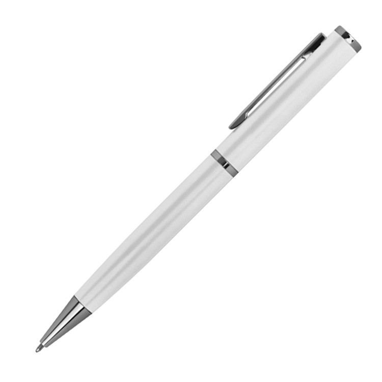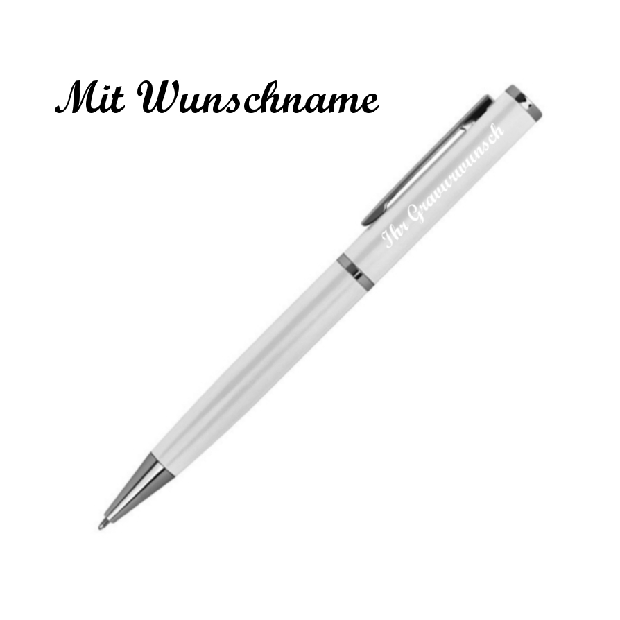 10x Drehbarer Metall Kugelschreiber mit Namensgravur - mit Velouretui - weiss