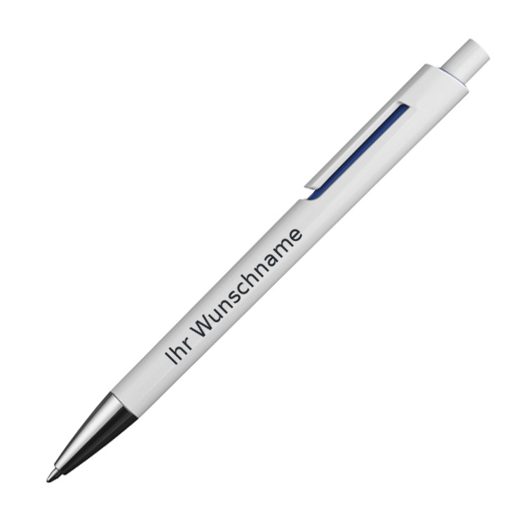 10x Kugelschreiber mit Gravur / mit farbigen Applikationen / Farbe: weiß-blau