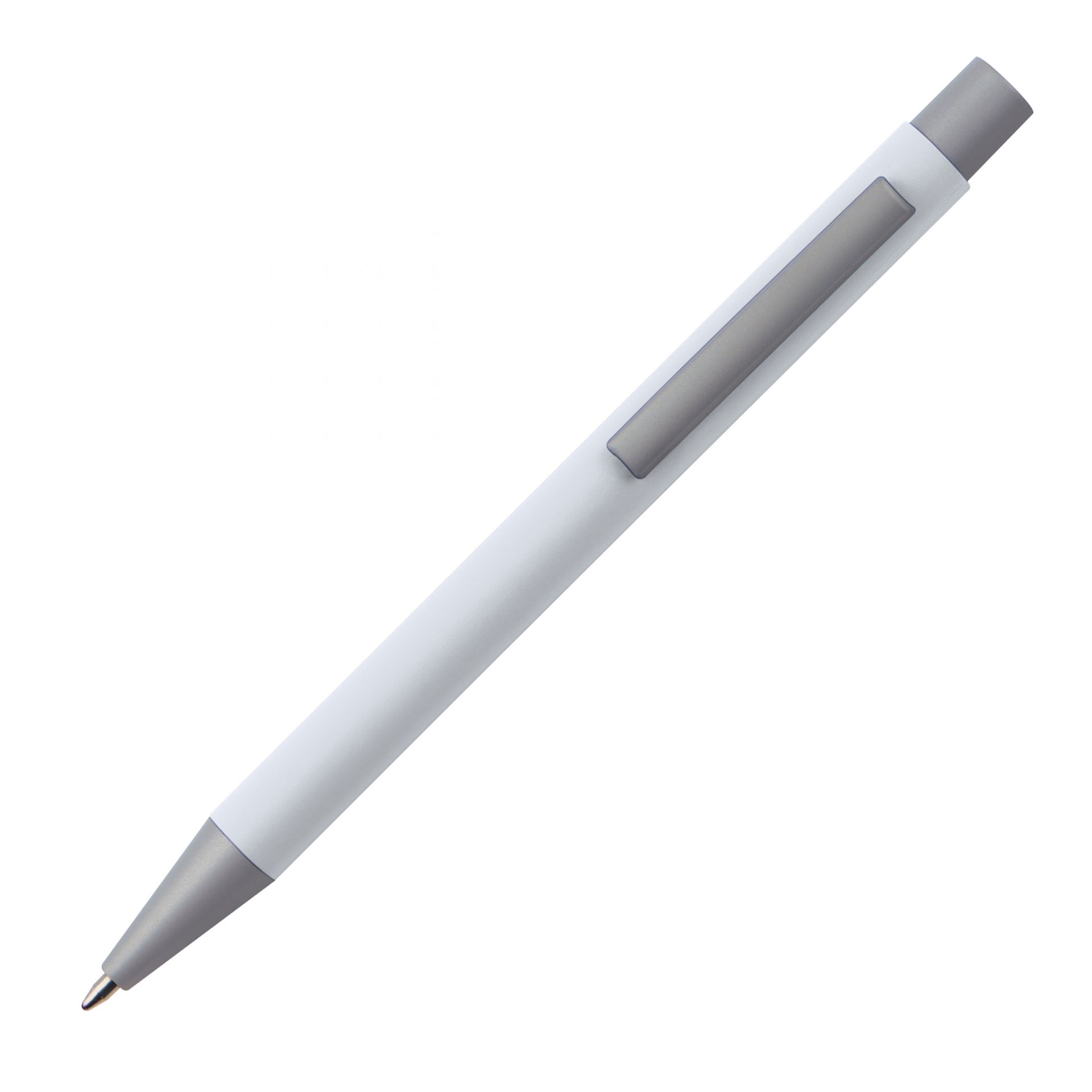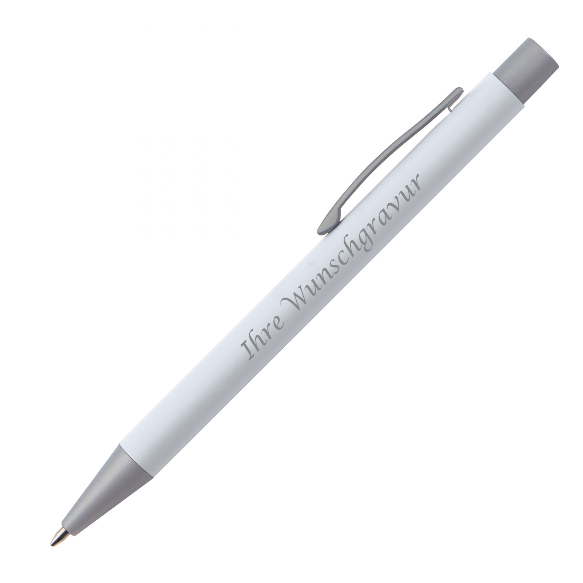 10x Metall-Kugelschreiber mit Gravur / mit rubber finish Oberfläche / weiß