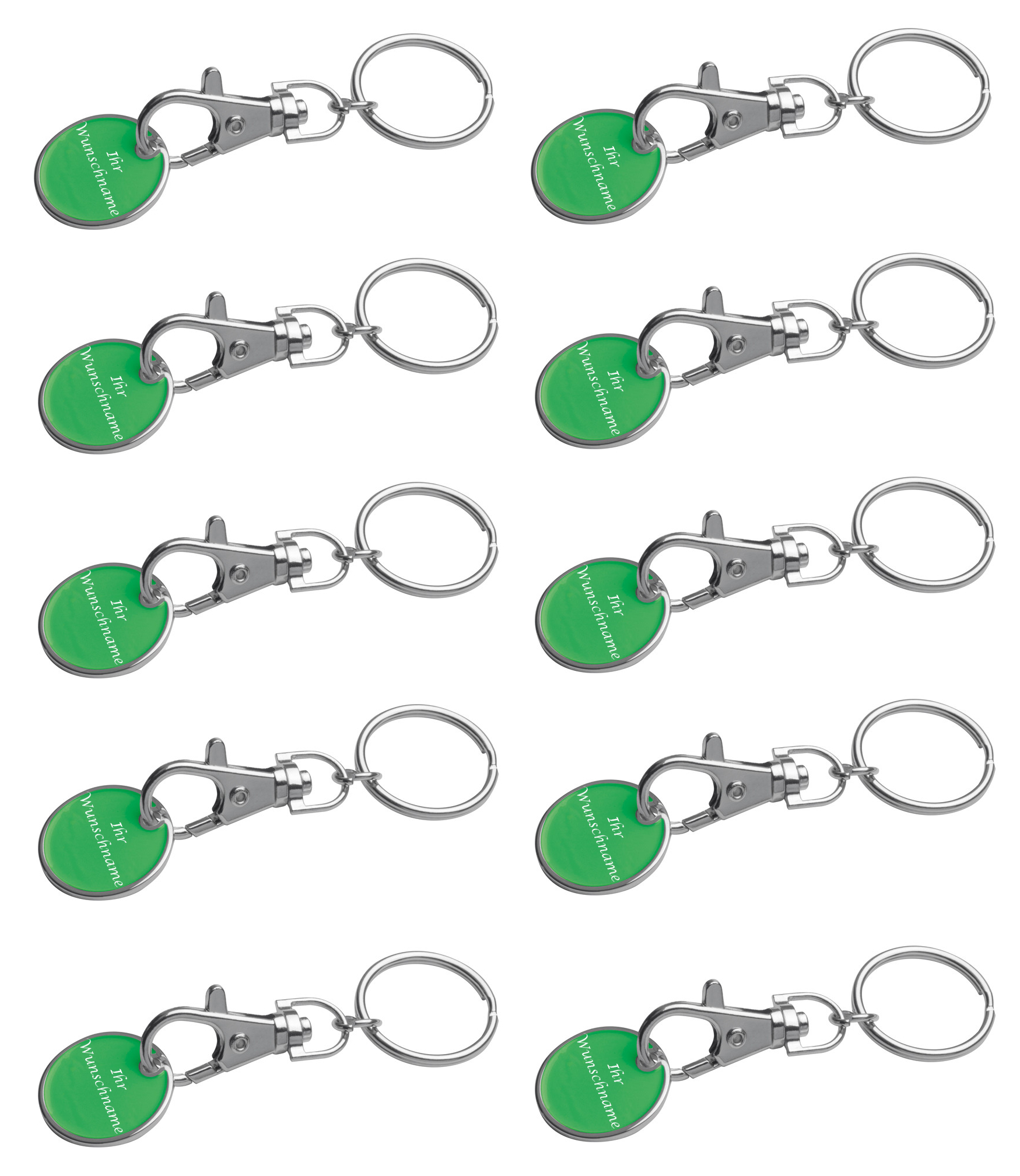 10x Metall Schlüsselanhänger mit Gravur / mit Einkaufschip / Farbe: grün
