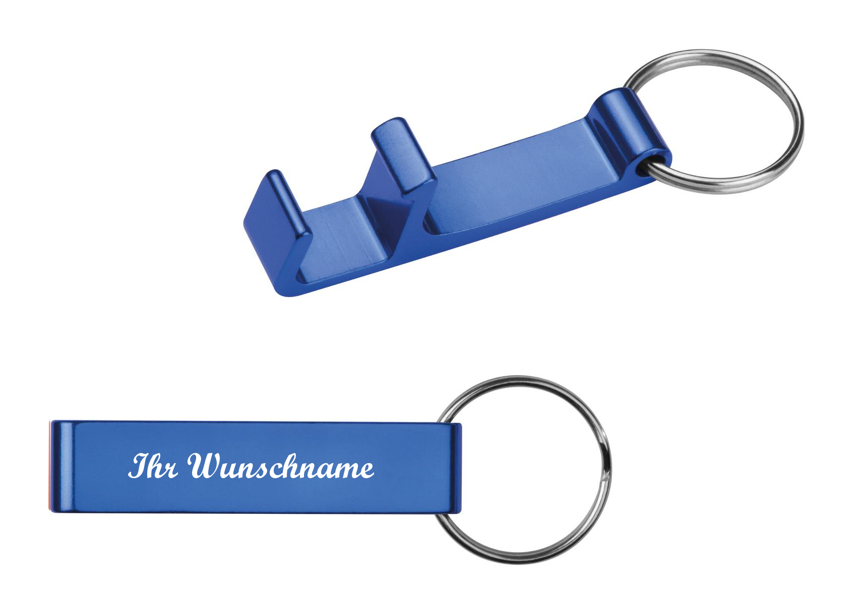10x Schlüsselanhänger mit Namensgravur - mit Flaschenöffner - Farbe: blau