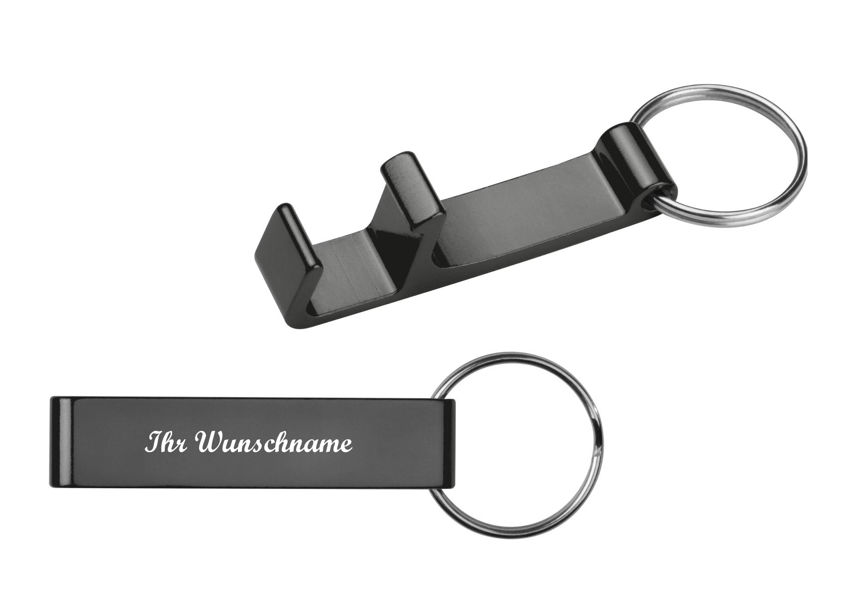10x Schlüsselanhänger mit Namensgravur - mit Flaschenöffner - Farbe: schwarz