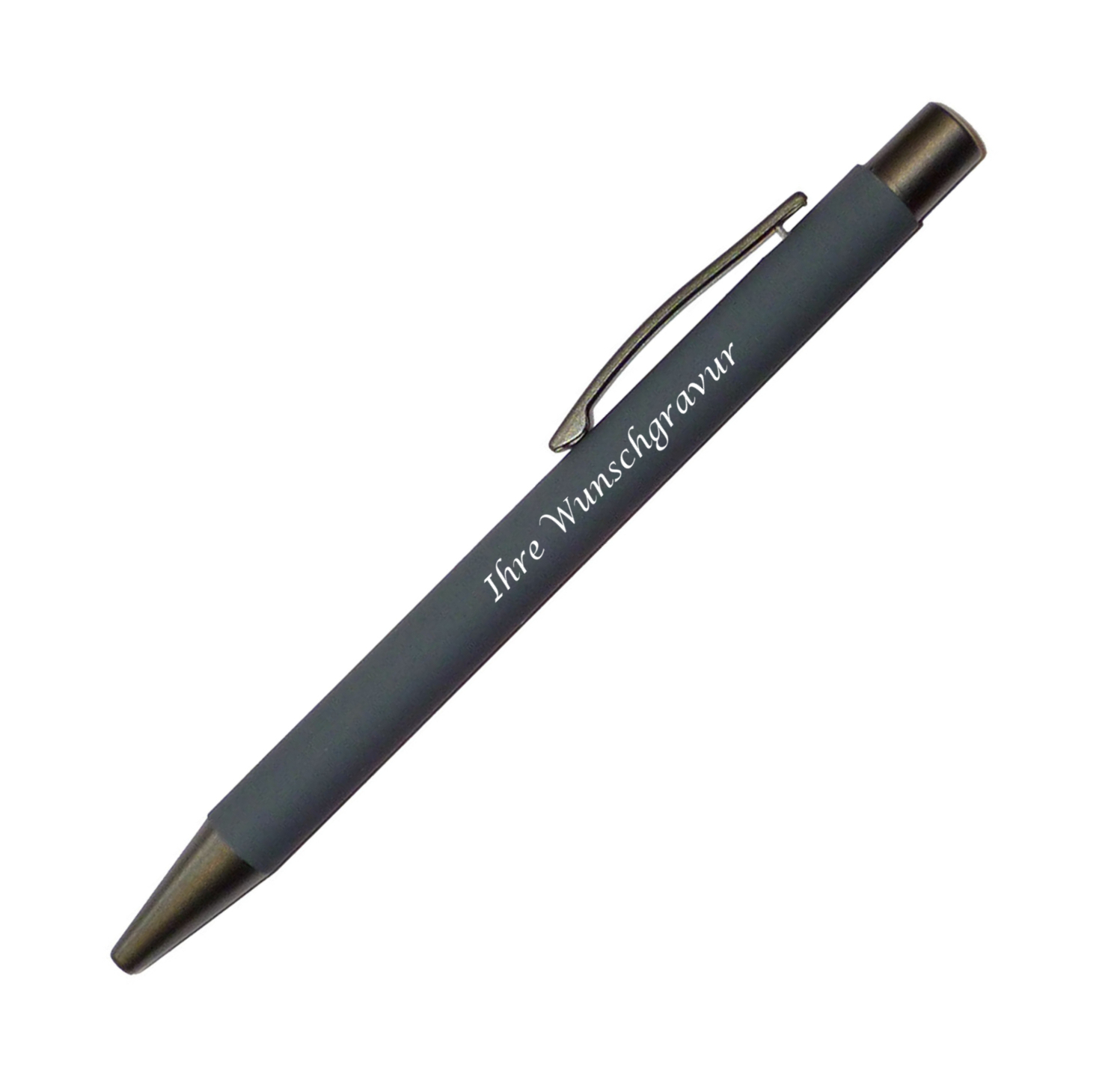 Produktinformationen "10x Softtouch-Kugelschreiber aus Metall mit Gravur / gummiert / Farbe: grau"