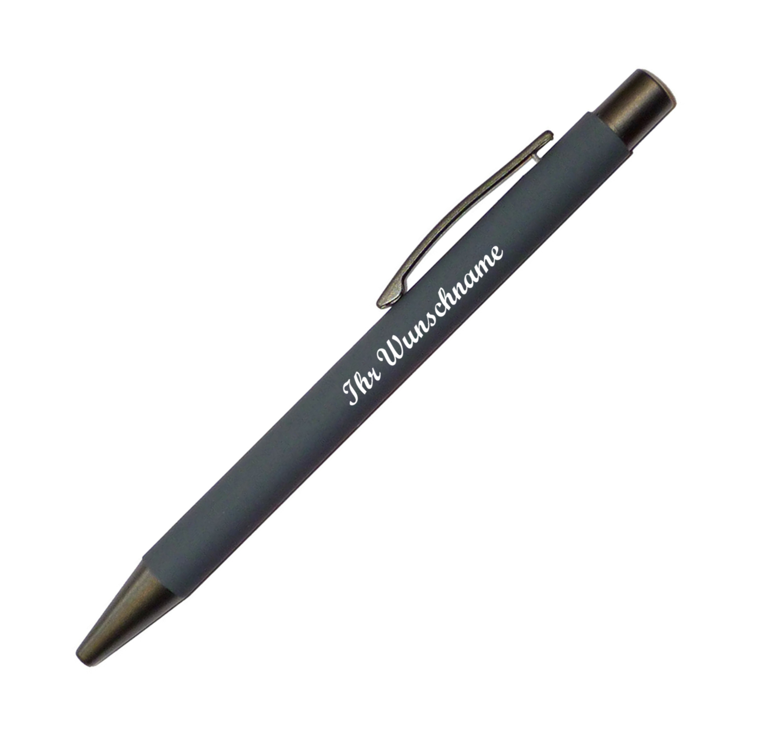 10x Softtouch-Kugelschreiber aus Metall mit Namensgravur - gummiert - grau
