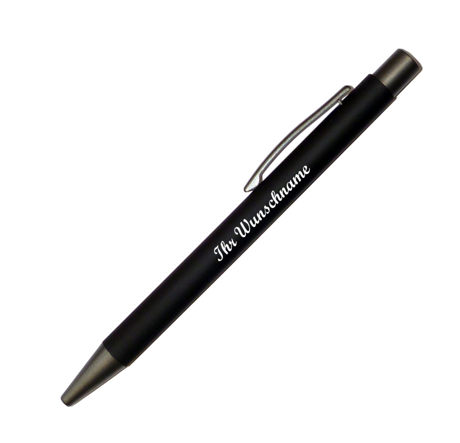 10x Softtouch-Kugelschreiber aus Metall mit Namensgravur - gummiert - schwarz