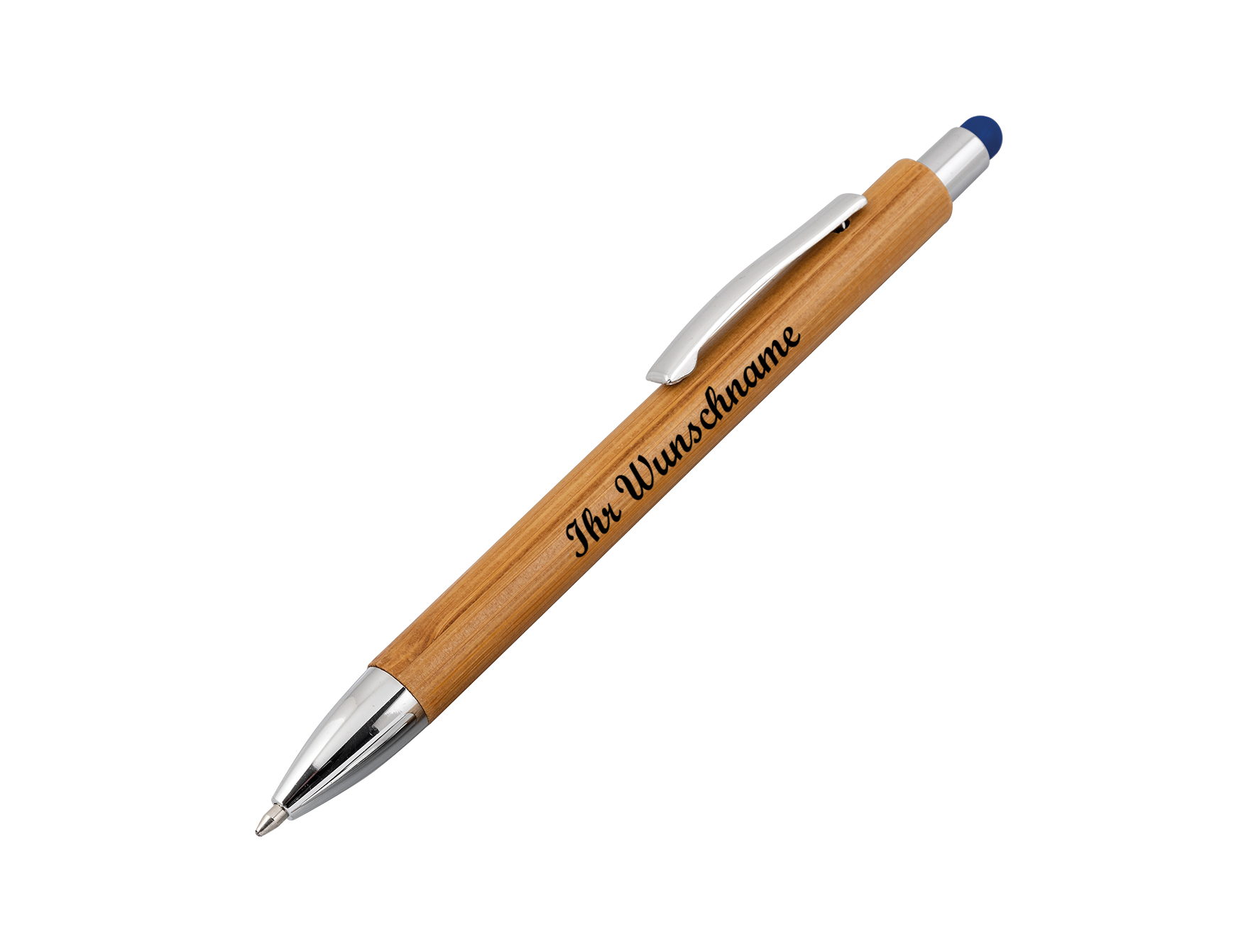 10x Touchpen Holz-Kugelschreiber mit Namensgravur - Stylusfarbe: blau