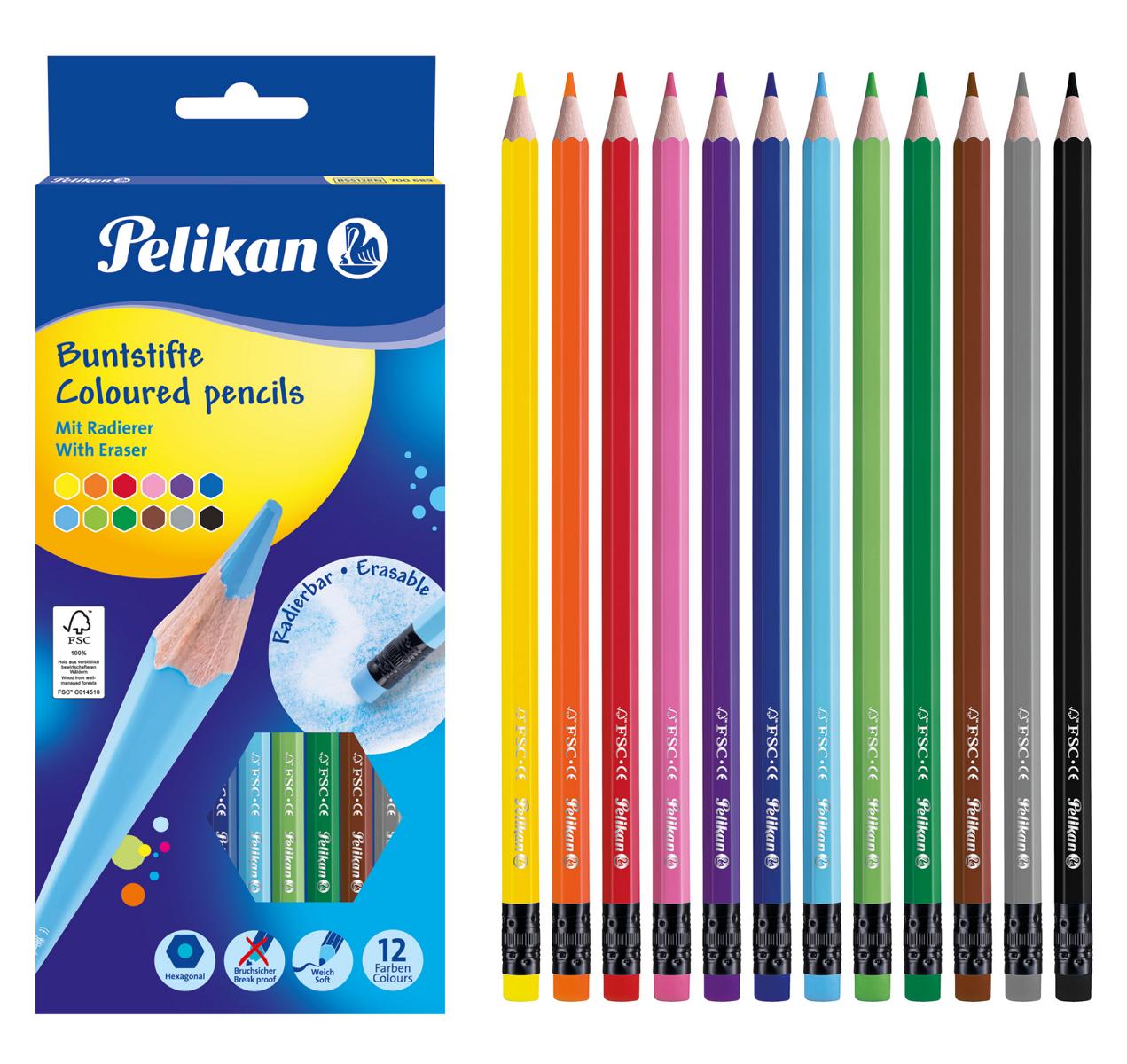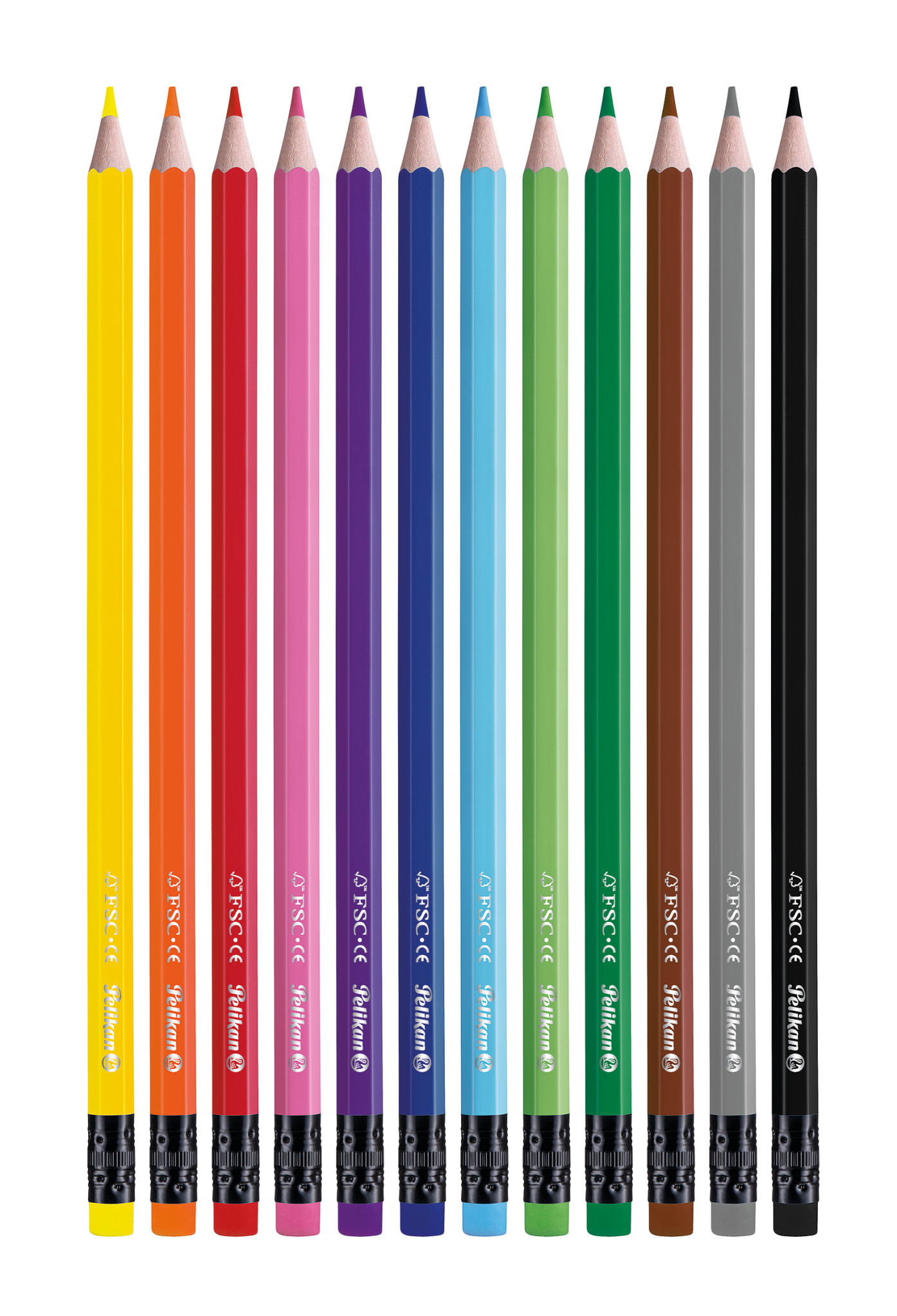 12 Pelikan Buntstifte / radierbar / mit 12 verschiedenen Farben