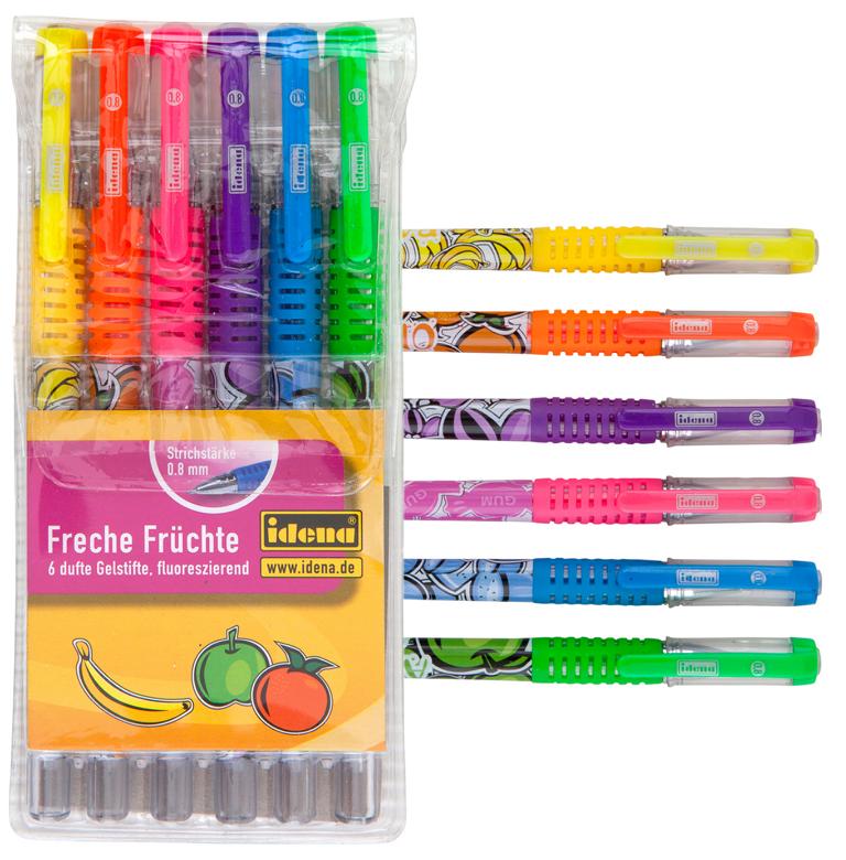 Produktinformationen "18 (3x 6) Gelschreiber Gelstifte "Freche Früchte" / mit Duft und flouresz"