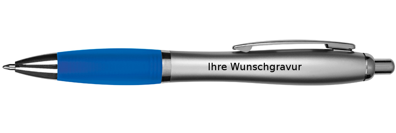 20 Kugelschreiber mit Gravur / mit satiniertem Gehäuse / Farbe: silber-blau