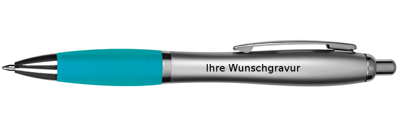 20 Kugelschreiber mit Gravur / mit satiniertem Gehäuse / Farbe: silber-türkis