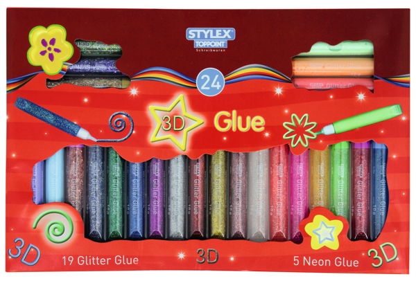 24 Tuben Glitter Glue & Neon Glue Stifte