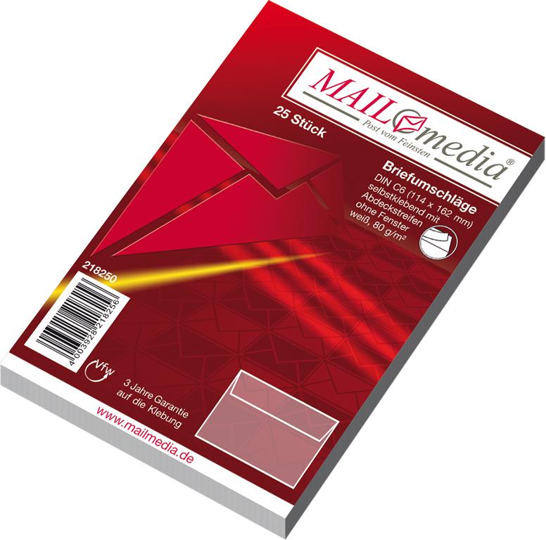 Produktinformationen "25 Briefumschläge Din C6 Kuvert 80g weiß haftklebend"
