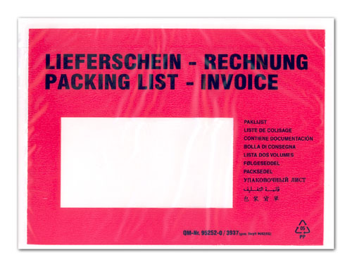 250 Dokumententaschen Lieferscheintaschen DIN C6 Lieferschein-Rechnung