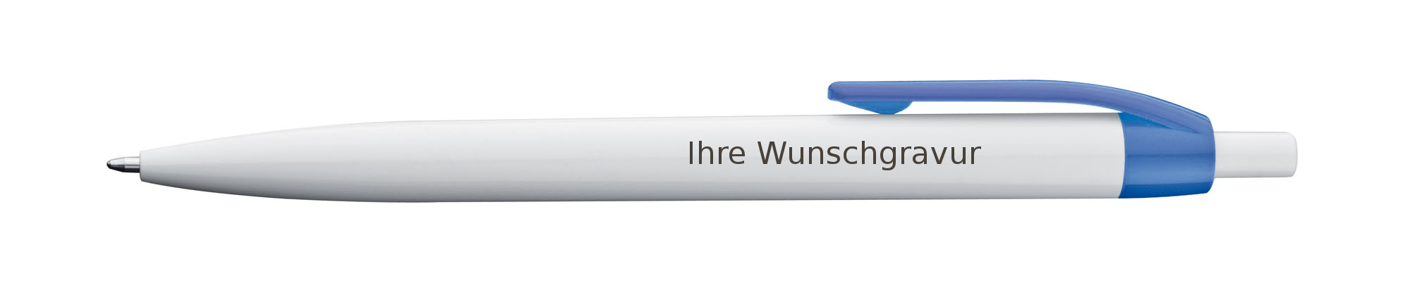 - Kugelschreiberfarbe: weiß mit blauen Clip