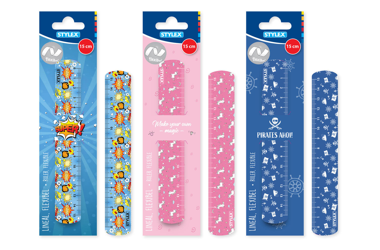 3x biegsames Lineal / 15cm / flexibel / 3 verschiedene Motive