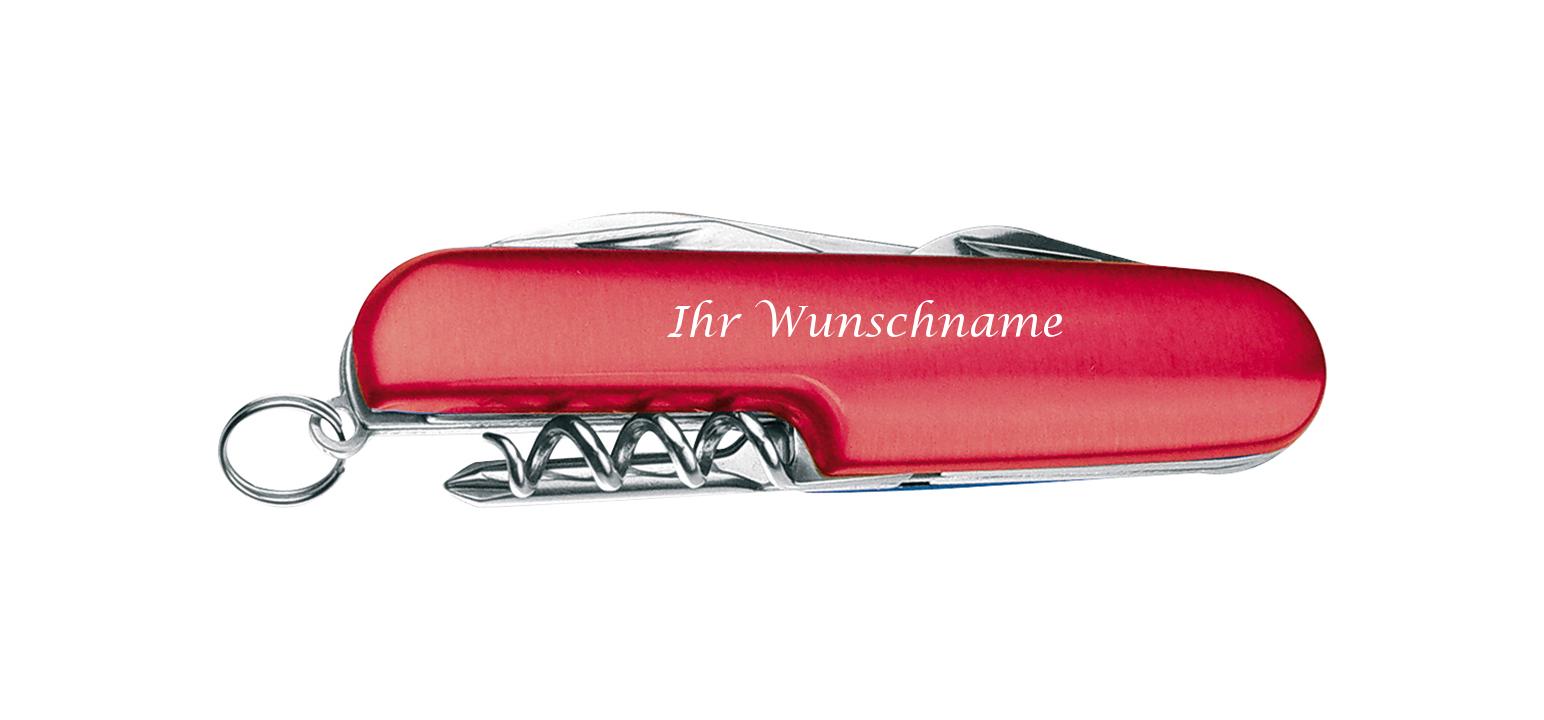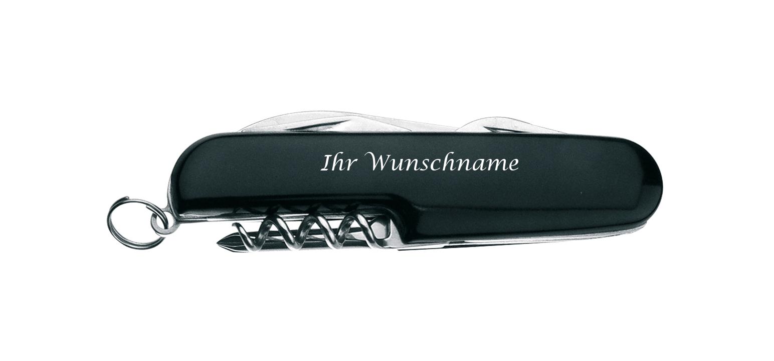 - mit großer Klinge, Dosen- und Flaschenöffner, Korkenzieher, Kreuz- und Schlitzschraubendreher und Schlüsselring