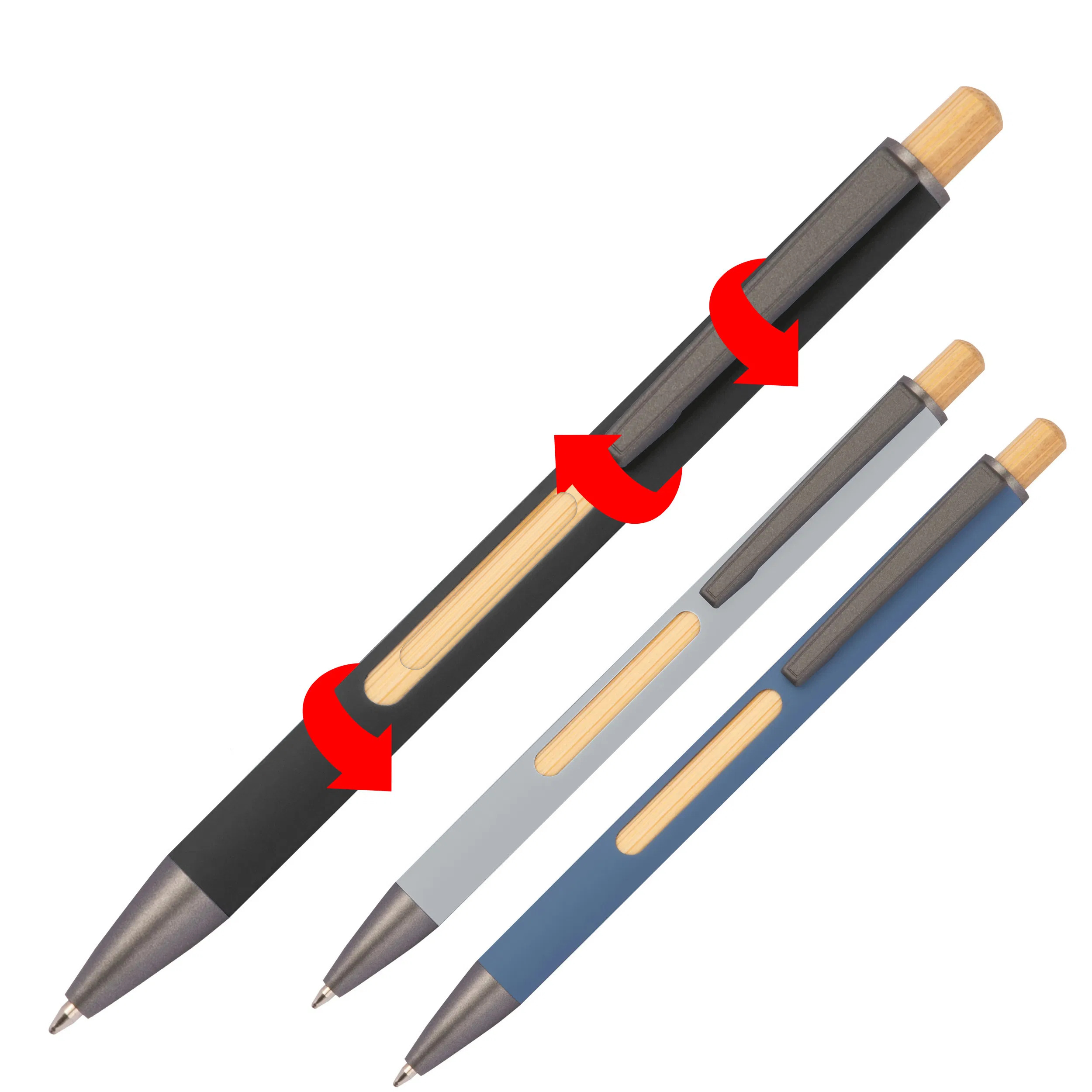 3x Kugelschreiber aus Metall / mit wechselndem Bambusfenster / 3 Farben