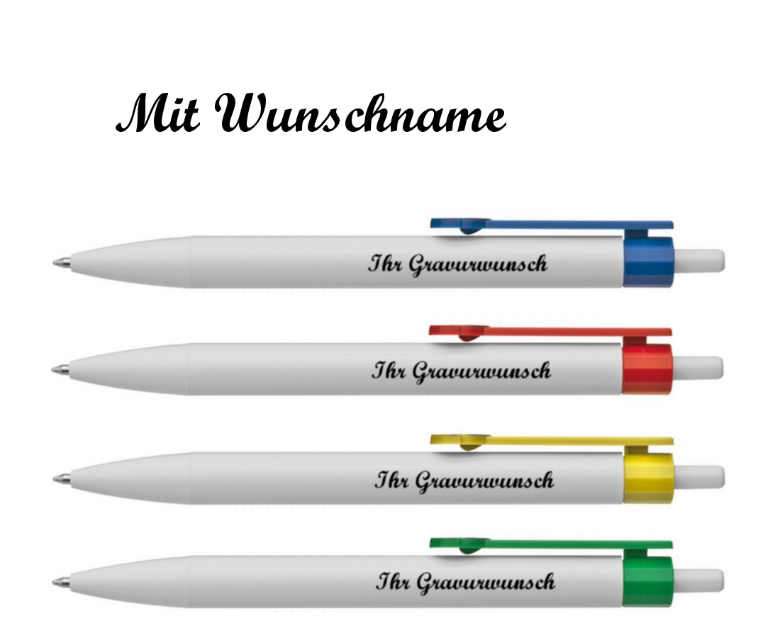 4x Druckkugelschreiber mit Namensgravur - mit Smile Gesicht - 4 versch. Farben