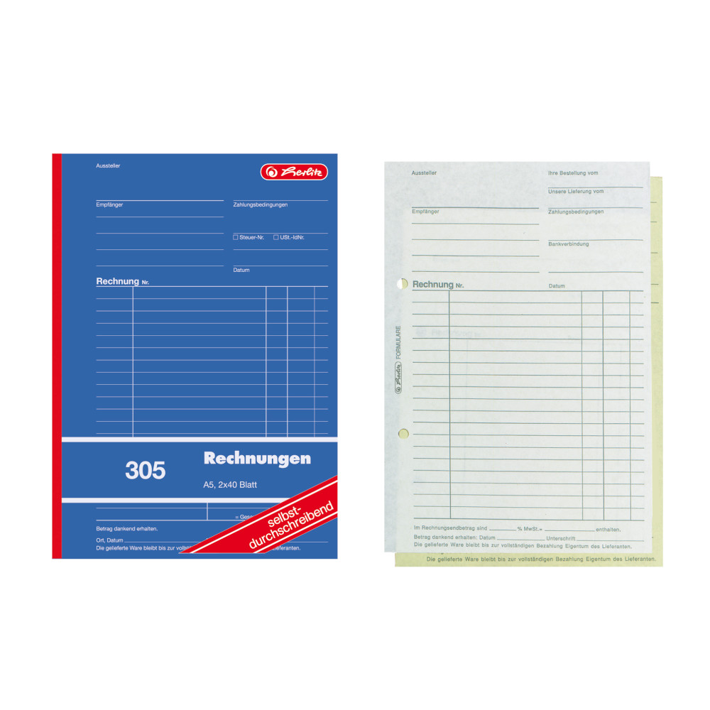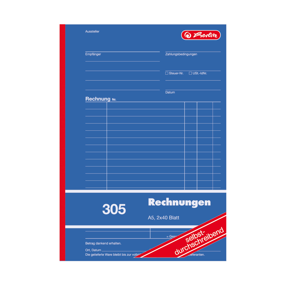 Produktinformationen "4x Herlitz Rechnungsbuch 305 / A5 / 2x 40 Blatt / selbstdurchschreibend"