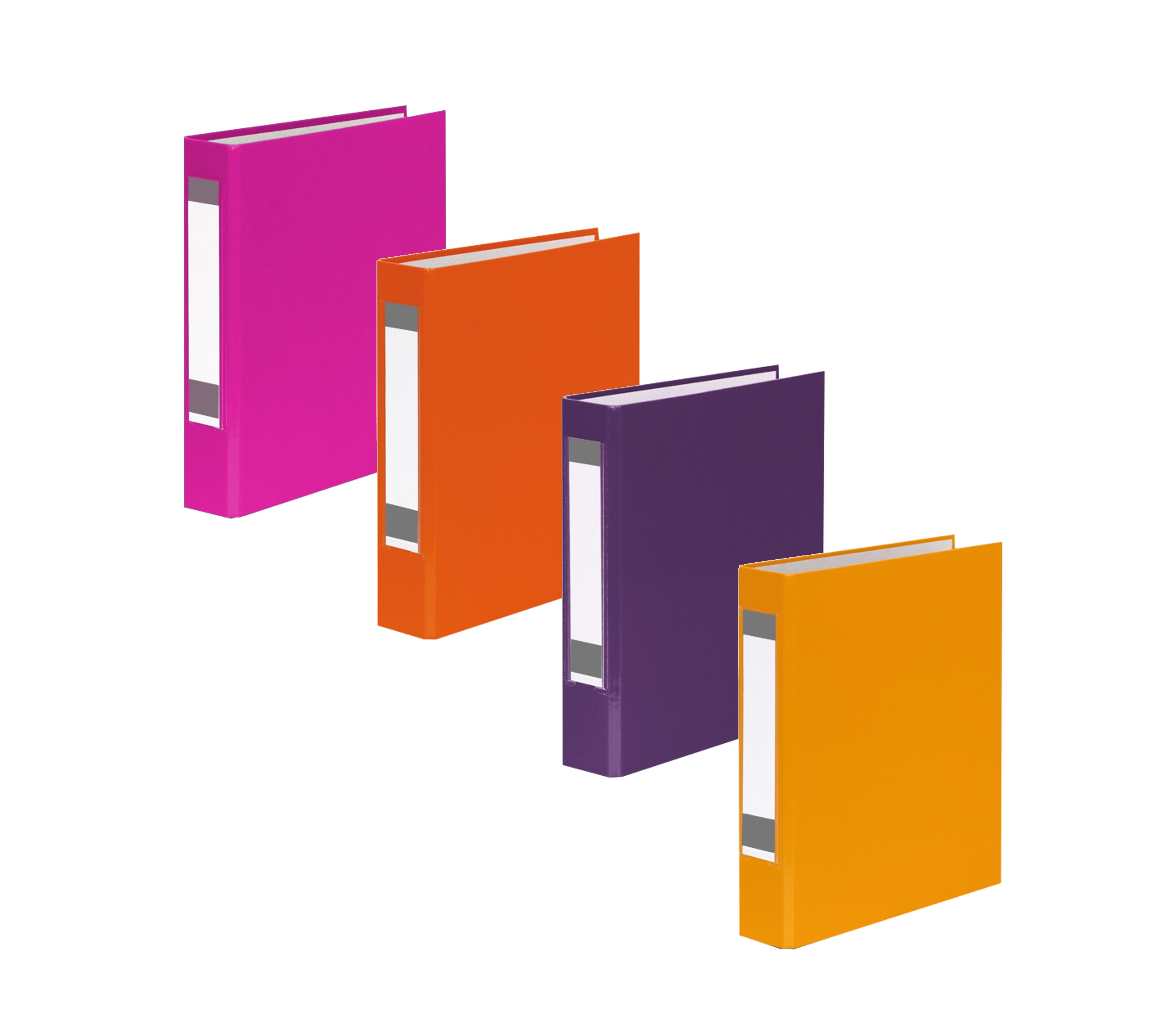 Produktinformationen "4x Ringbuch mit Rückenschild / DIN A5 / 2-Ring / je 1x lila,gelb,orange,pink"