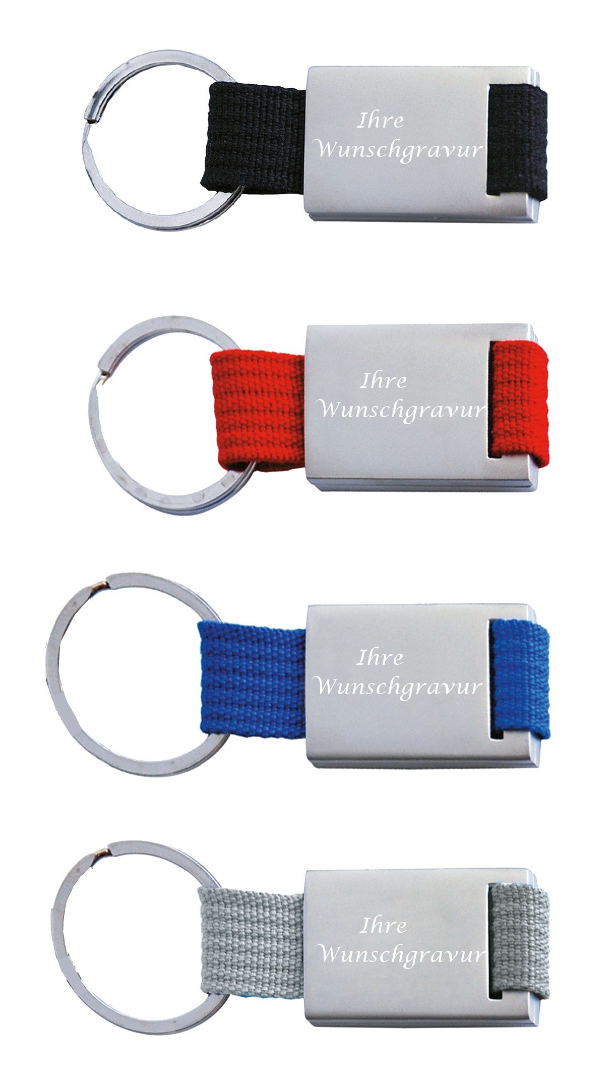 4x Schlüsselanhänger mit Gravur / aus Metall mit trendigem Nylonband / 4 Farben