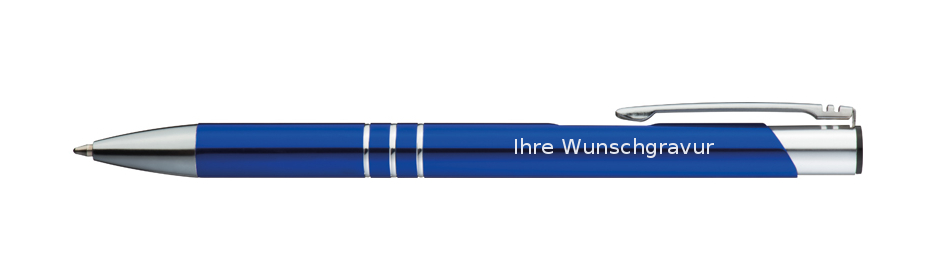 5 Kugelschreiber aus Metall / mit Gravur / Farbe: blau