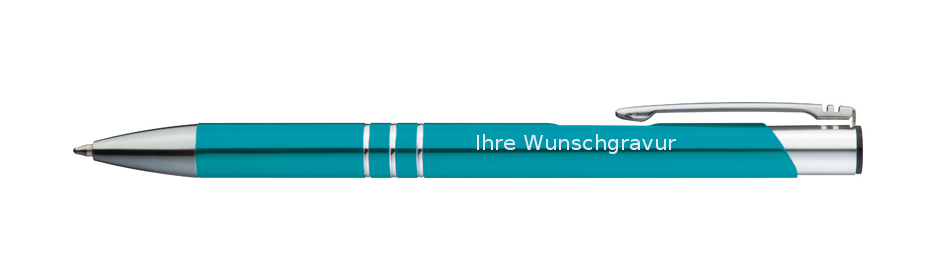 5 Kugelschreiber aus Metall / mit Gravur / Farbe: türkis