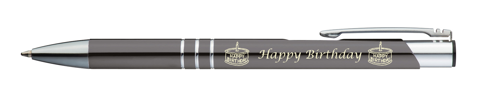 Produktinformationen "5 Kugelschreiber mit Gravur "Happy Birthday" / aus Metall / Farbe: anthrazit"