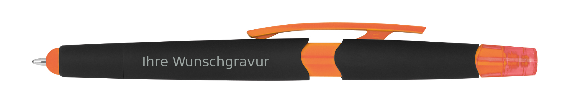 5 Touchpen Kugelschreiber mit Gravur / mit Textmarker / Farbe: orange
