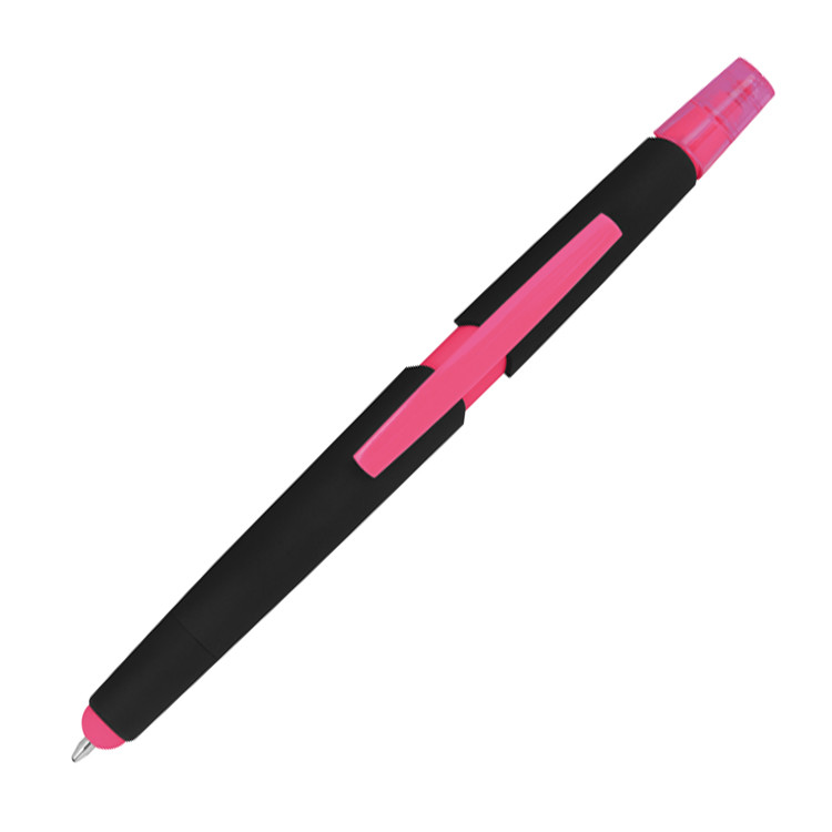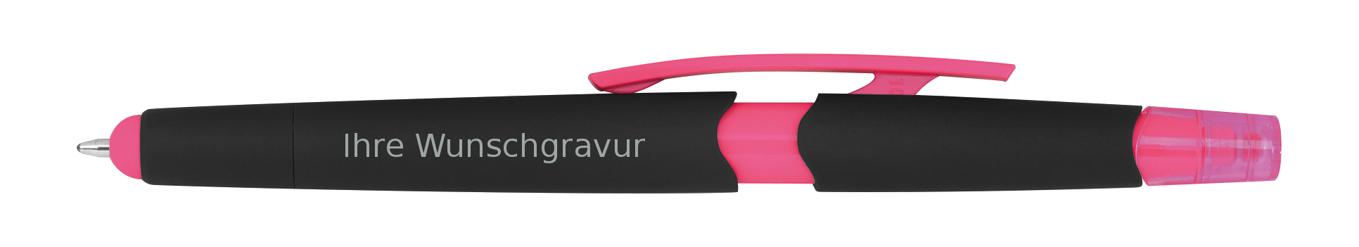 5 Touchpen Kugelschreiber mit Gravur / mit Textmarker / Farbe: pink