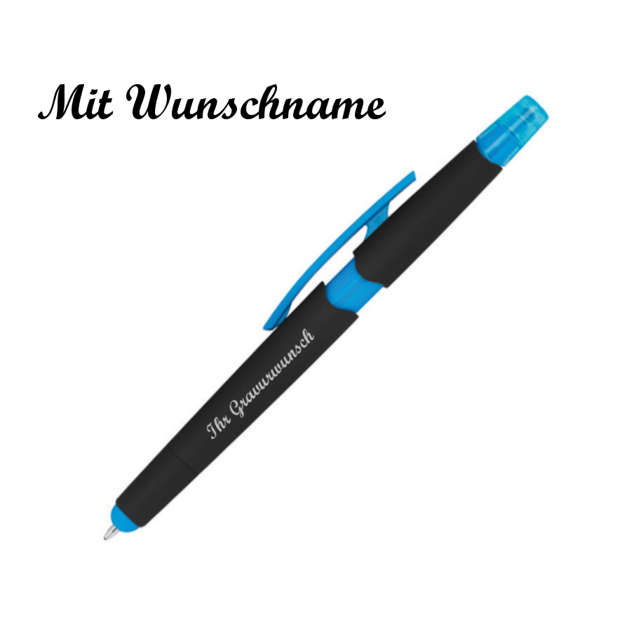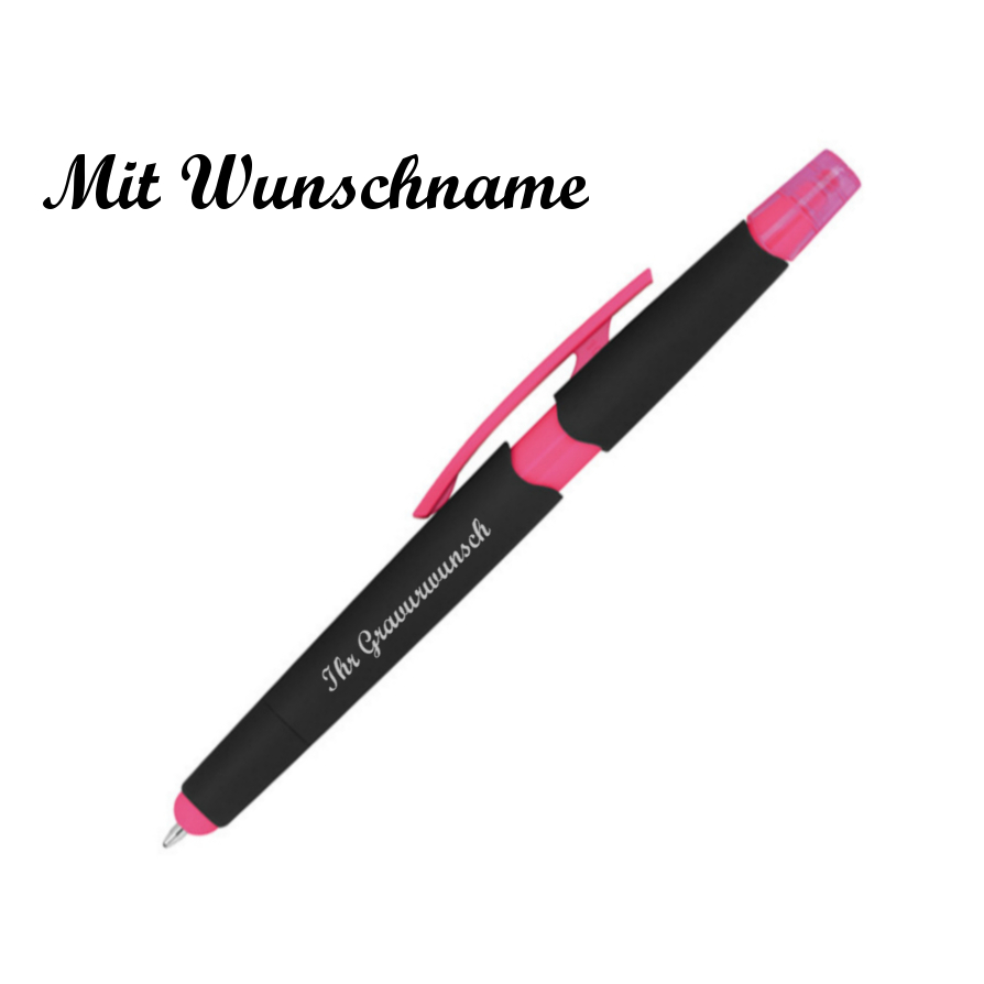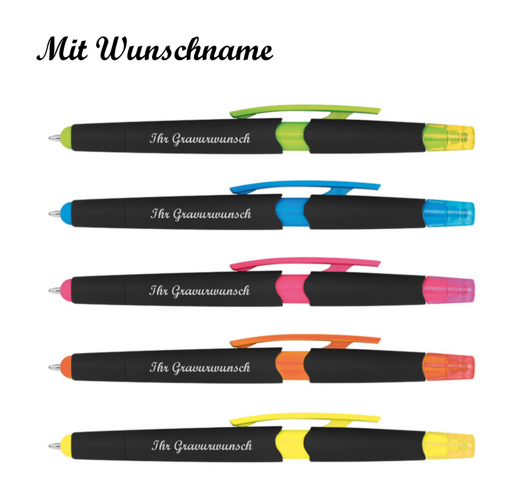 5 Touchpen Kugelschreiber mit Namensgravur - mit Textmarker - 5 versch. Farben