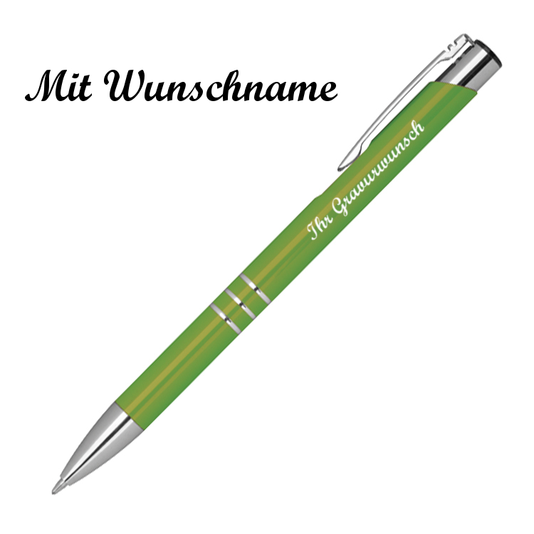50 Kugelschreiber aus Metall mit Namensgravur - Farbe: hellgrün
