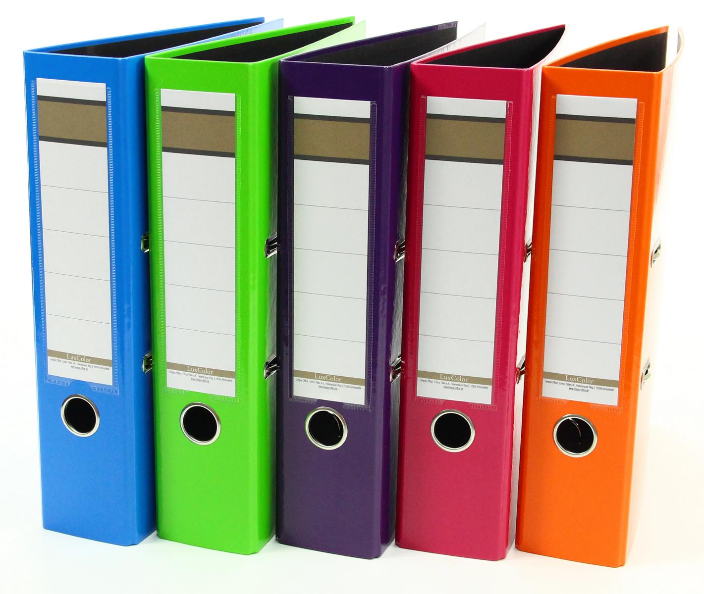Produktinformationen "5x Glanz-Ordner / DIN A4 / 75mm breit / je 1x blau, hellgrün, lila, pink, orange"