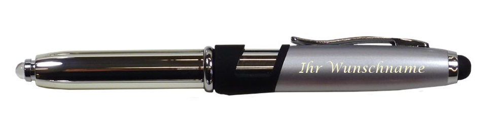 5x LED Touchpen Kugelschreiber mit Gravur / mit Smartphone Halterung / silber