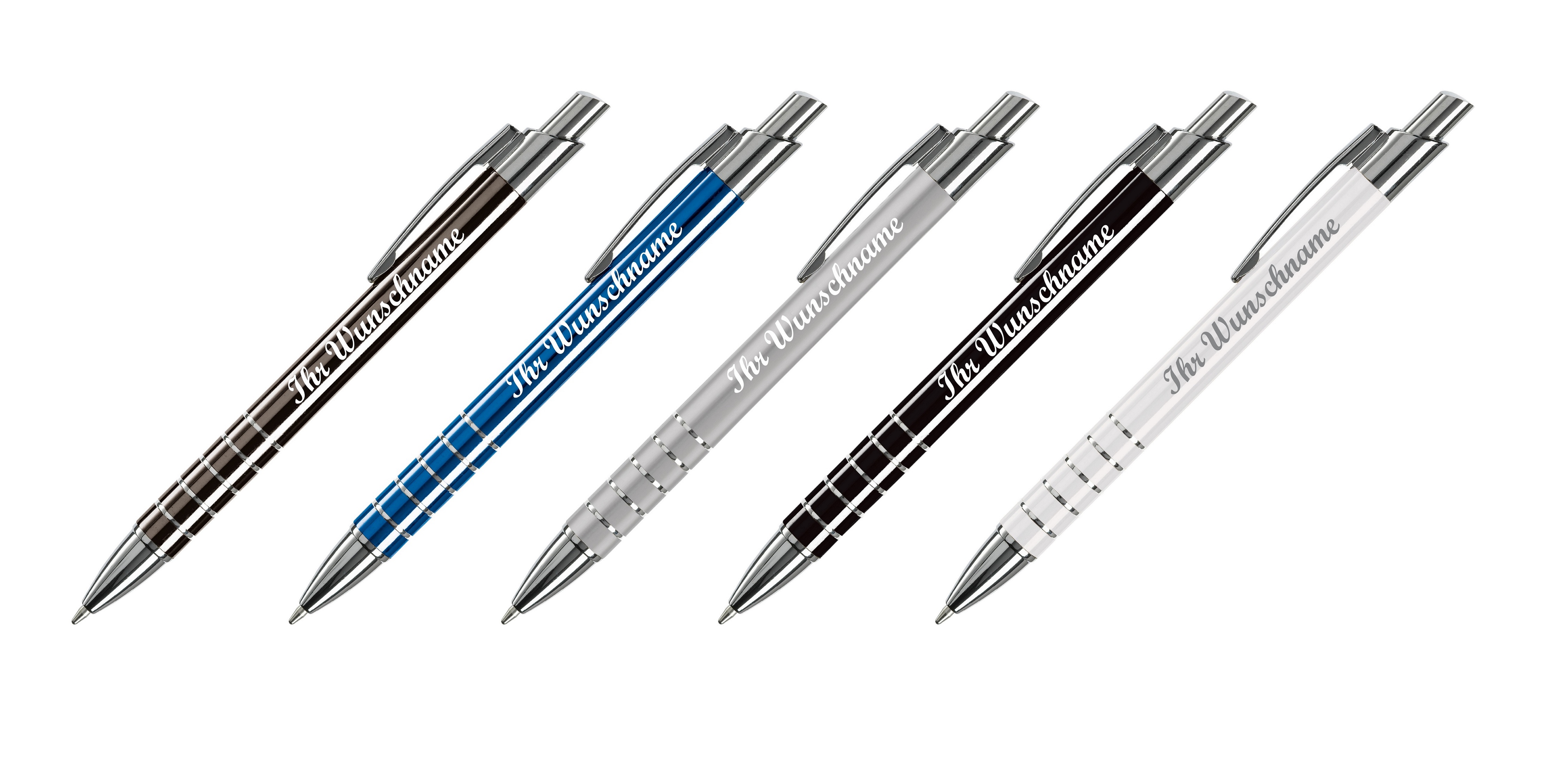 5x Schlanker Metall-Kugelschreiber mit Namensgravur - 5 Farben