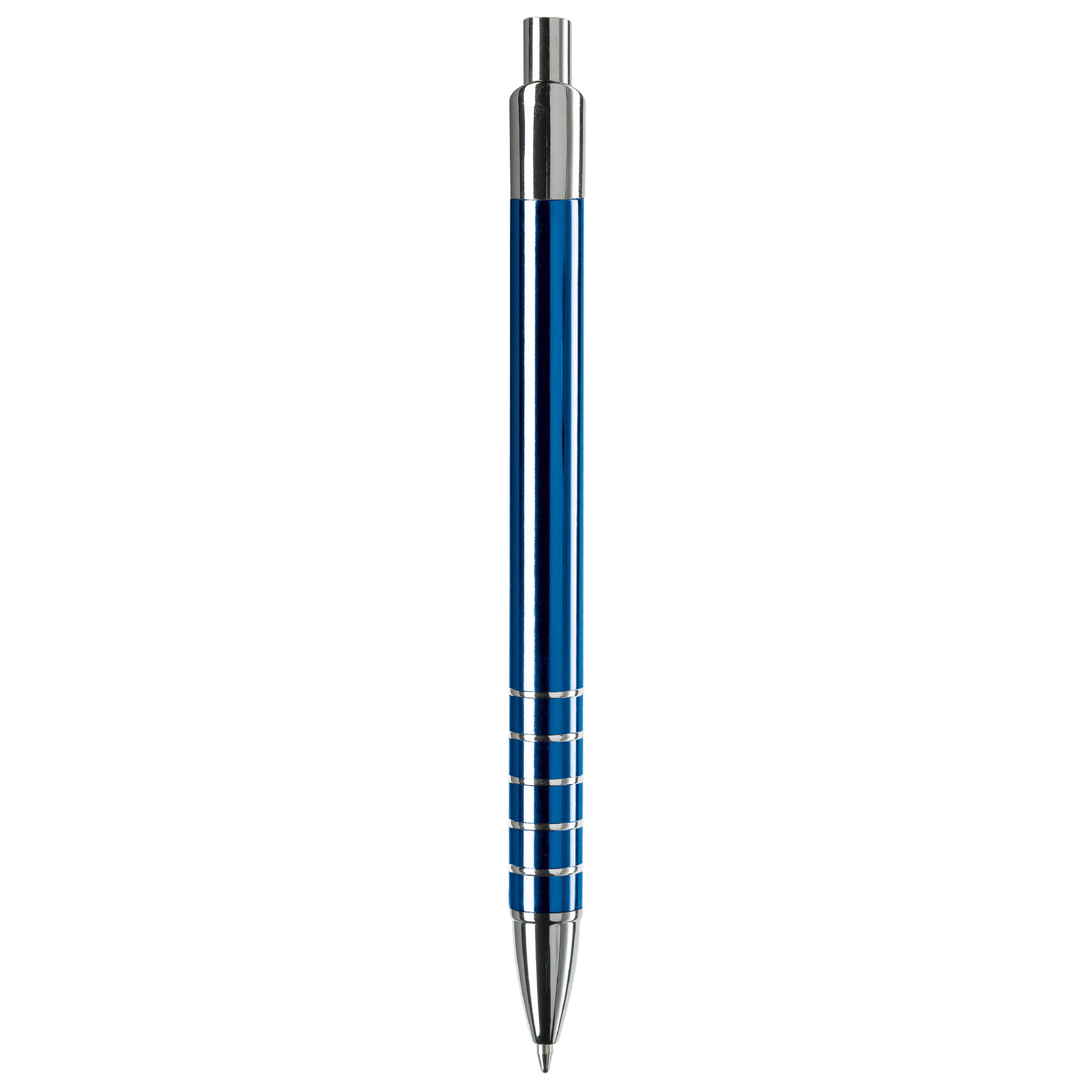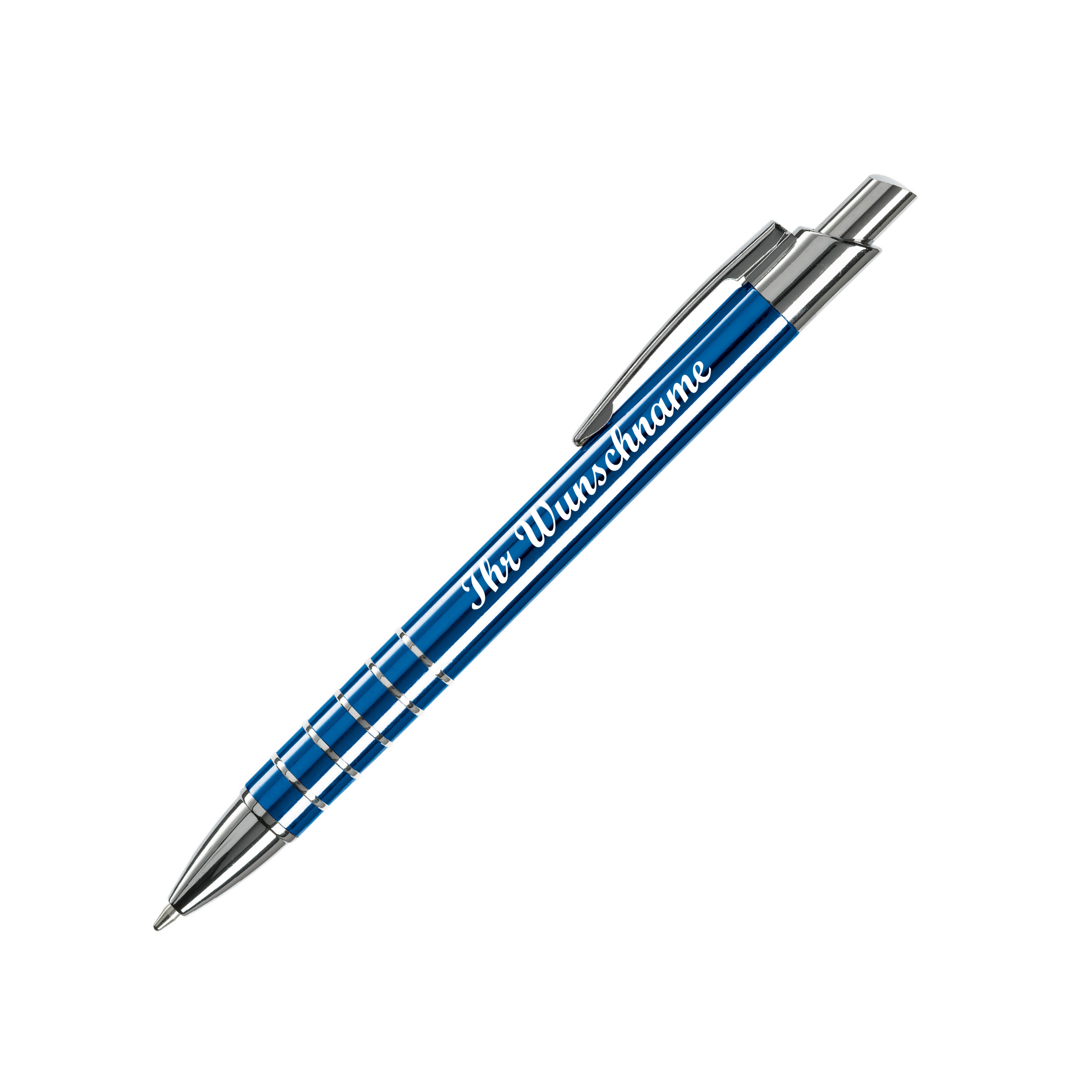5x Schlanker Metall-Kugelschreiber mit Namensgravur - verchromte Teile - blau