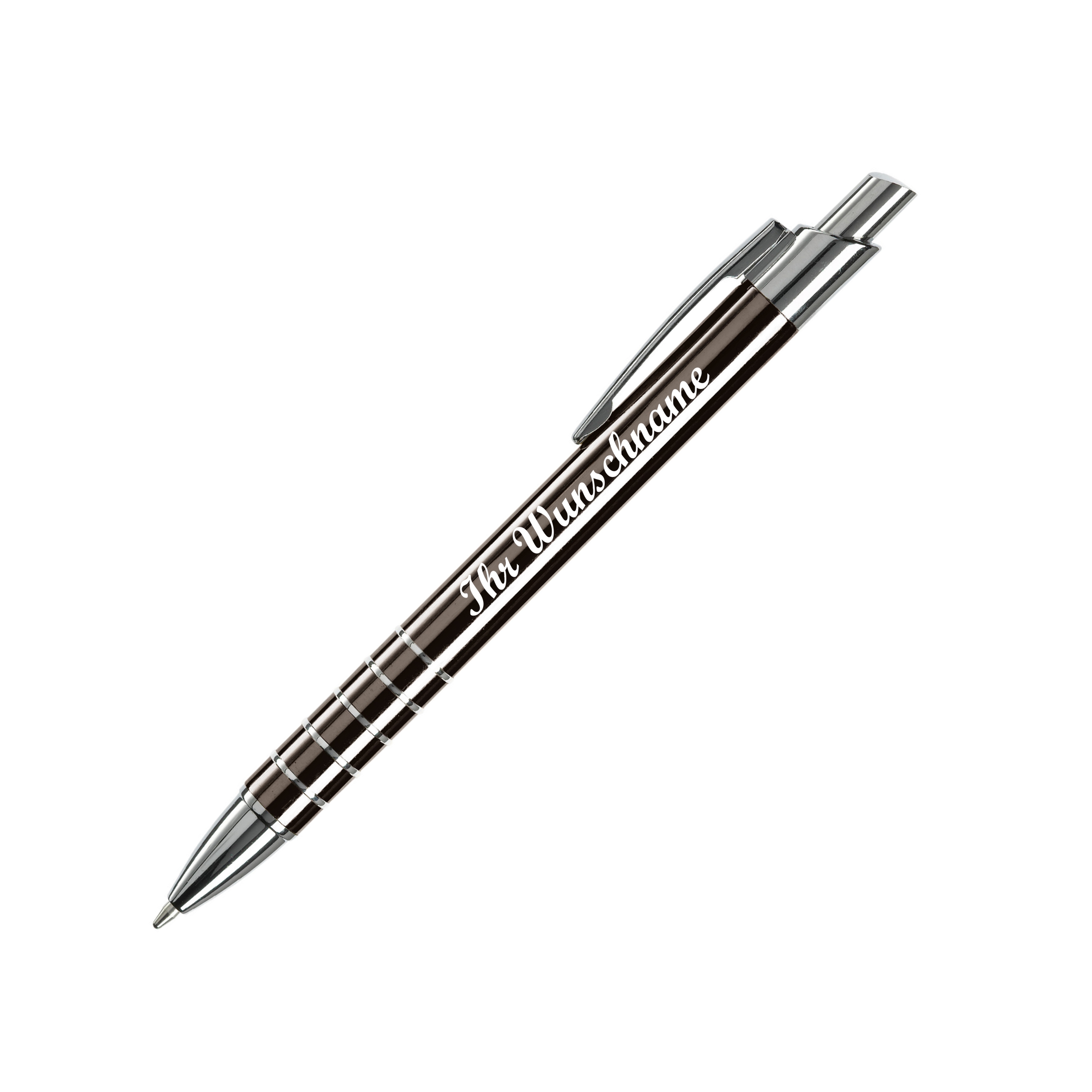 5x Schlanker Metall-Kugelschreiber mit Namensgravur - verchromte Teile - grau