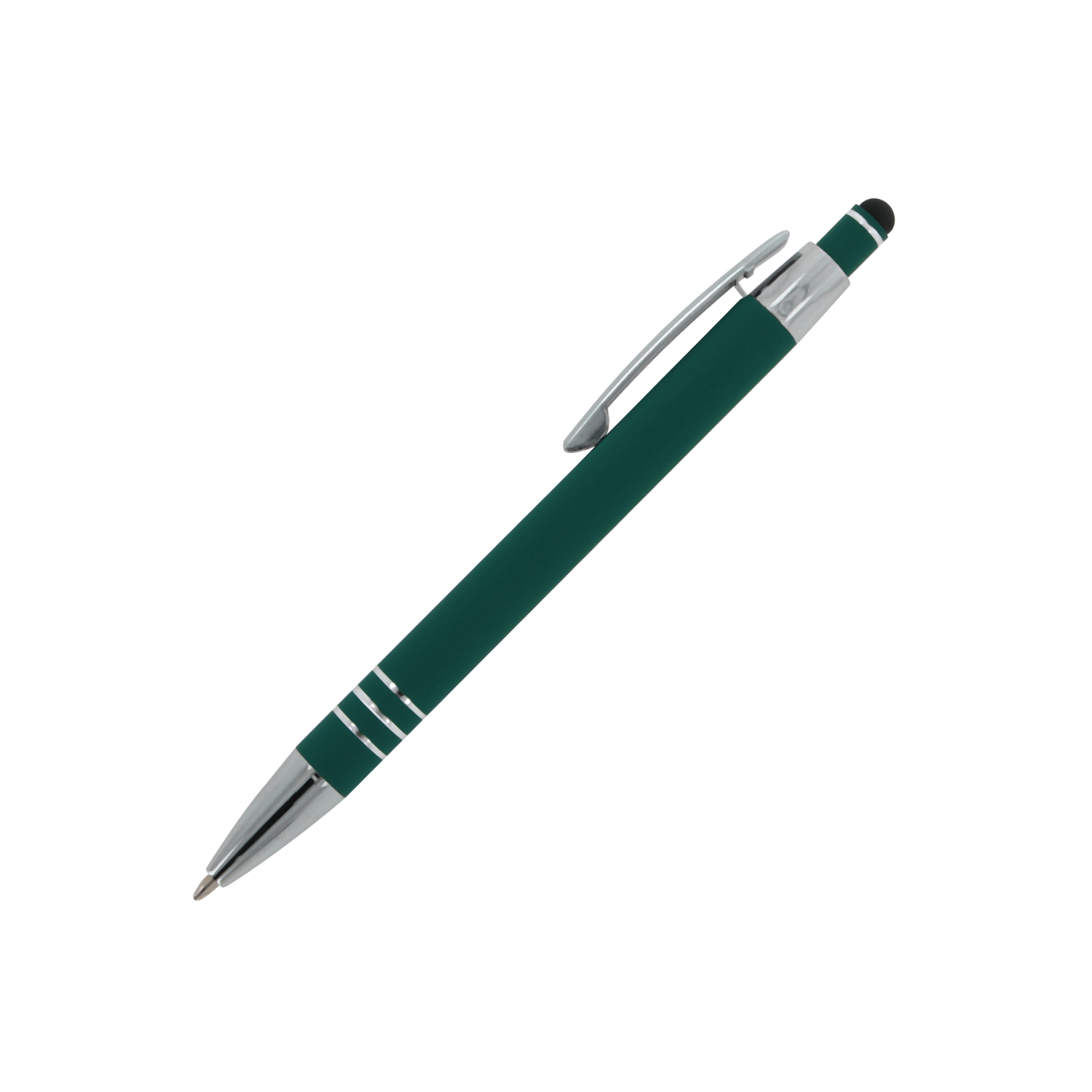 5x Touchpen Kugelschreiber / aus Metall / mit Soft-Touch / Farbe: dunkelgrün
