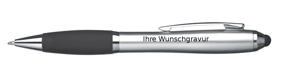5x Touchpen Kugelschreiber mit Gravur / Farbe: silber-schwarz