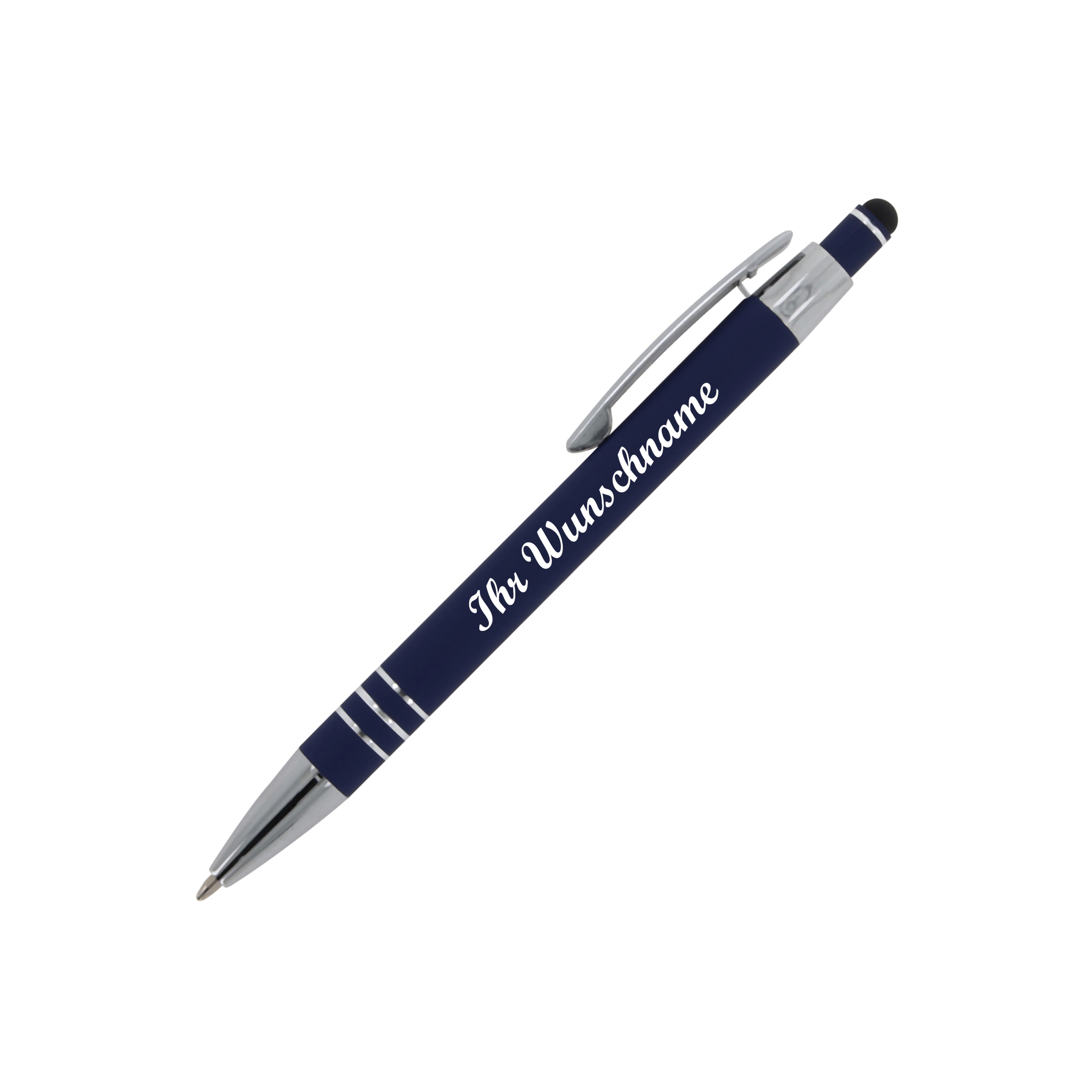 5x Touchpen Kugelschreiber mit Namensgravur - aus Metall - dunkelblau