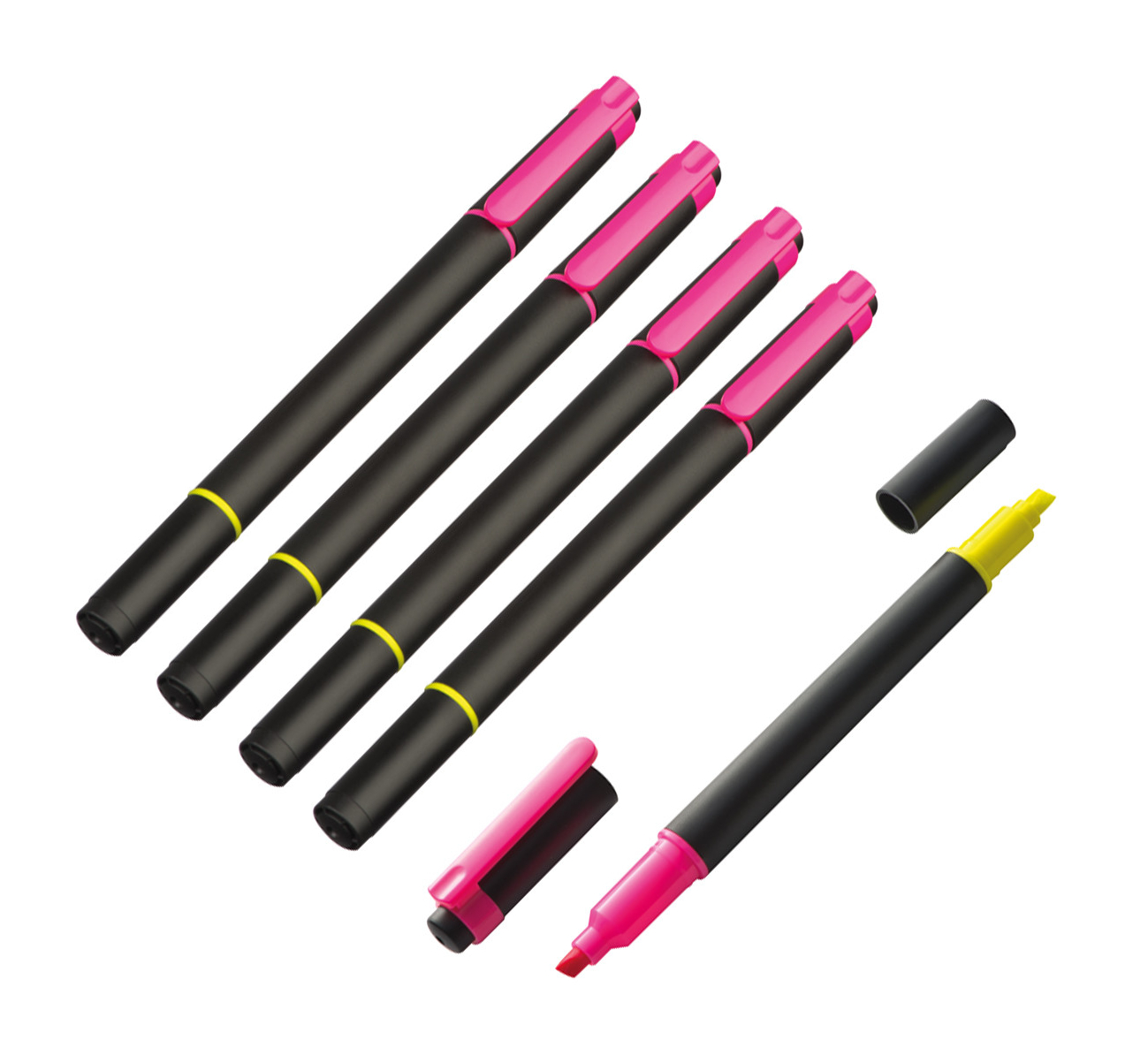 - ein Marker in neongelb, der andere in neonpink