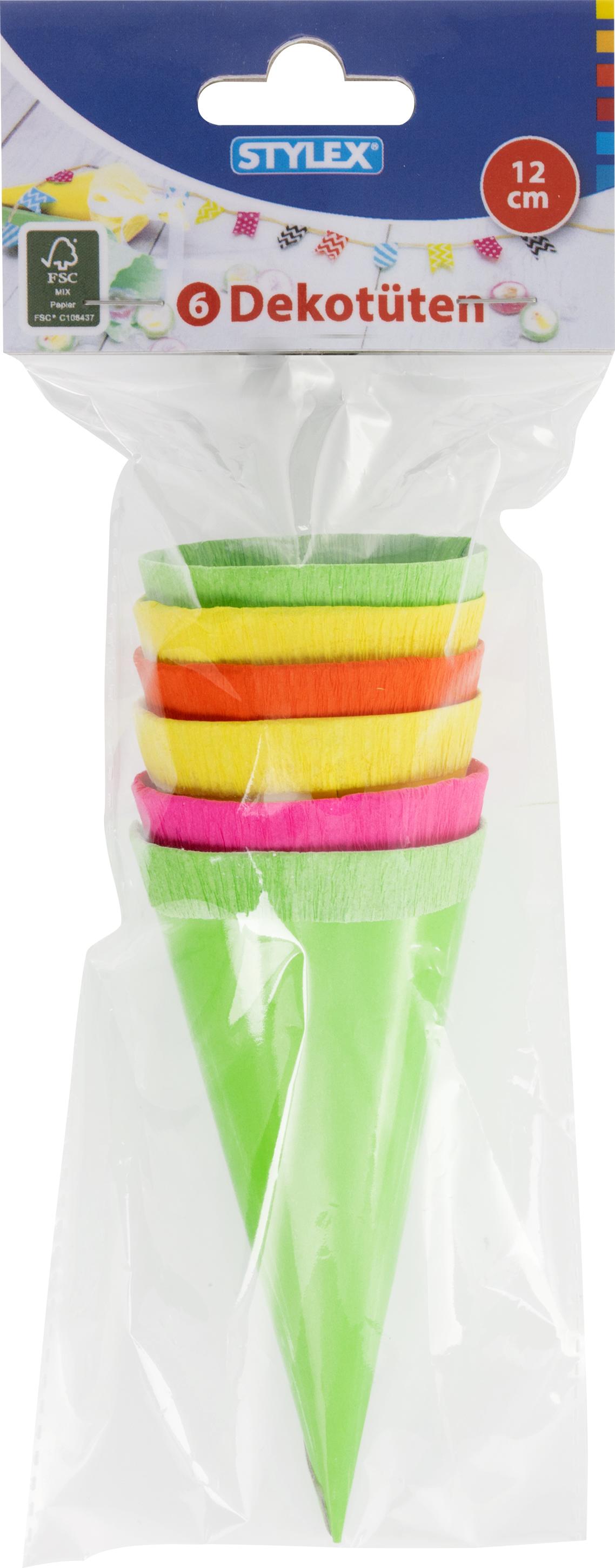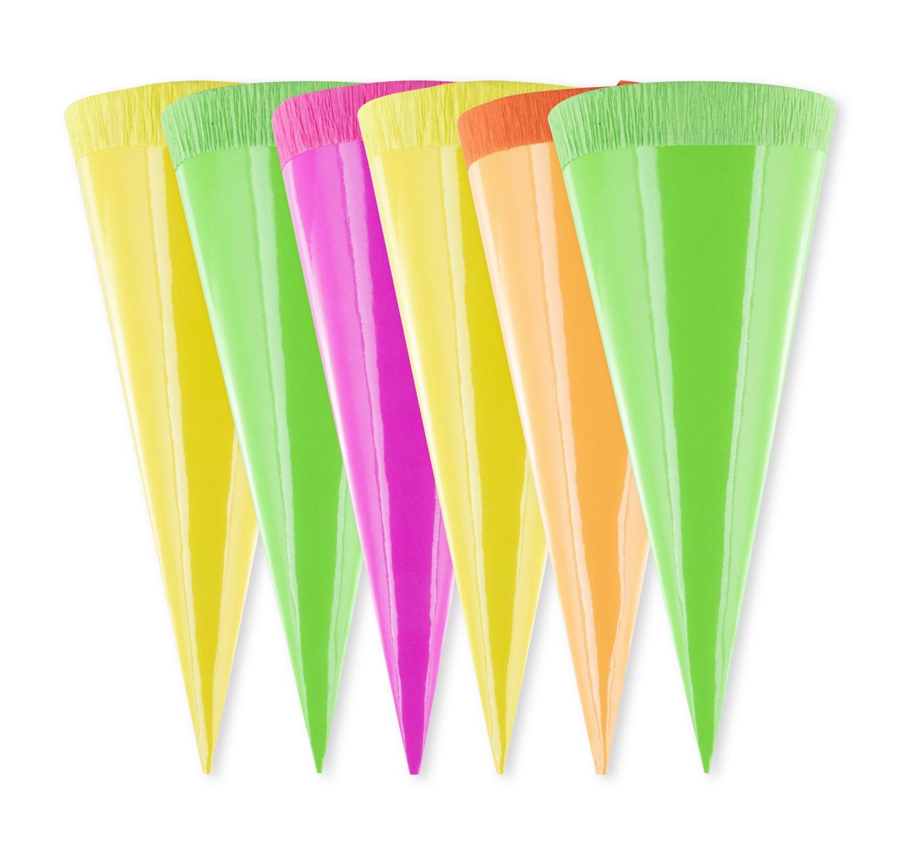 Produktinformationen "6 Deko Schultüten / 12cm lang / neonfarben"