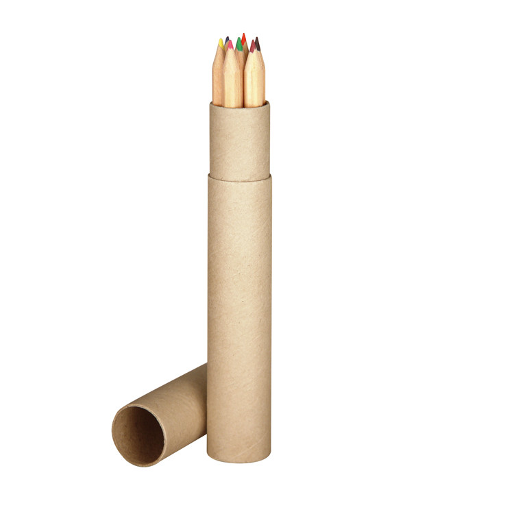 7 lange Buntstifte / naturbelassen / im praktischen Pappköcher