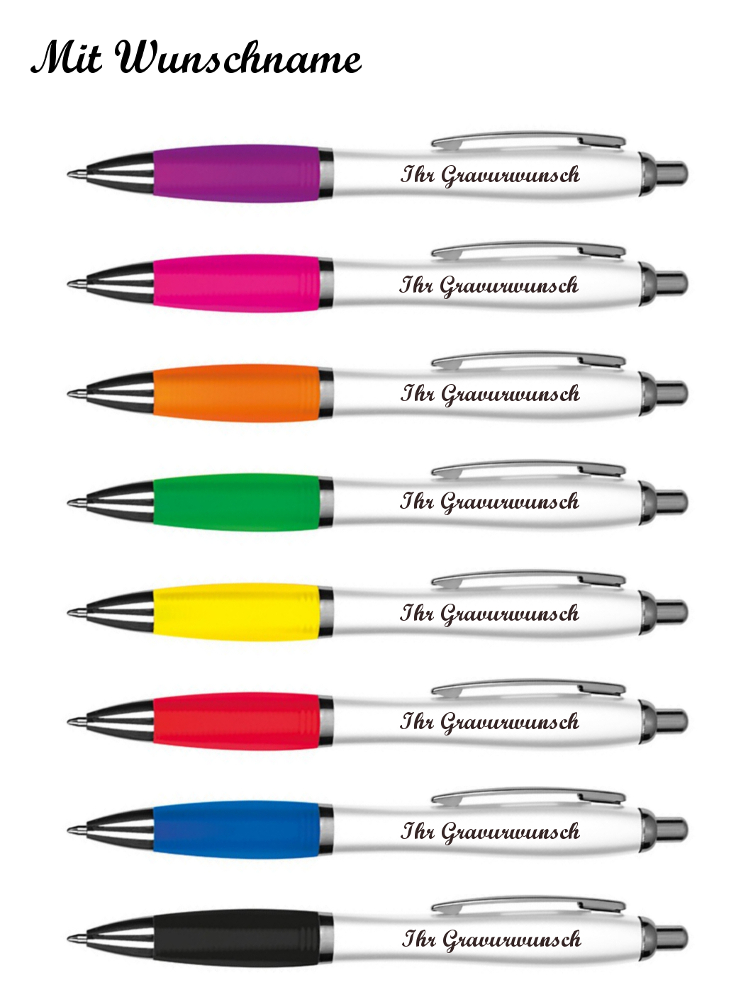 8 Kugelschreiber mit Namensgravur - aus Kunststoff - 8 verschiedene Farben