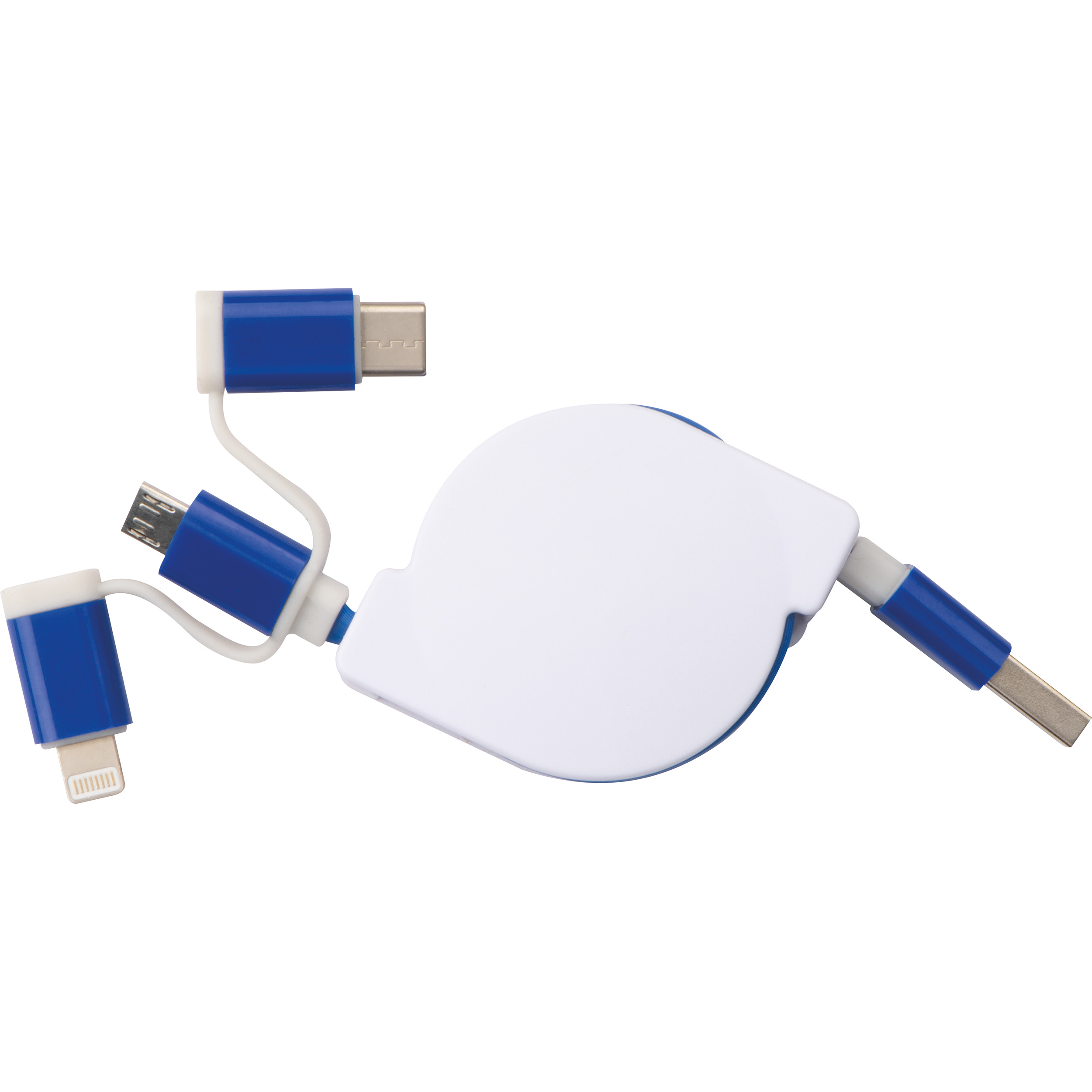 Ausziehbares Ladekabel mit iOS, C-Type und Micro USB Anschluss / Farbe: blau