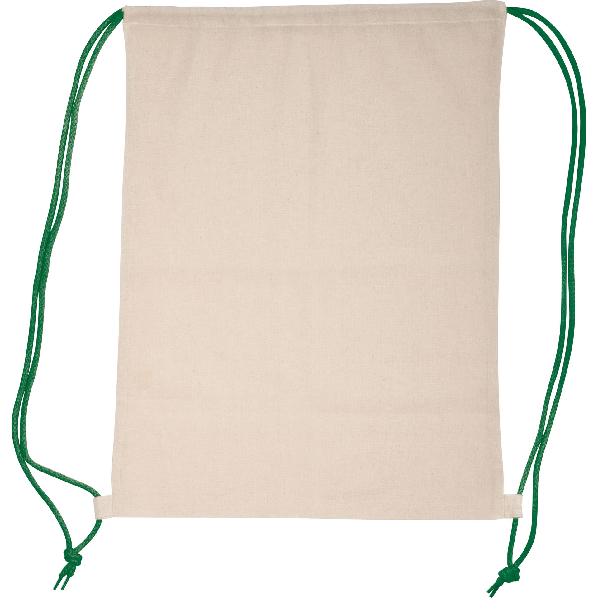 Baumwolle Gymbag / Sportbeutel / Turnbeutel / weiß mit grünen Kordelzügen