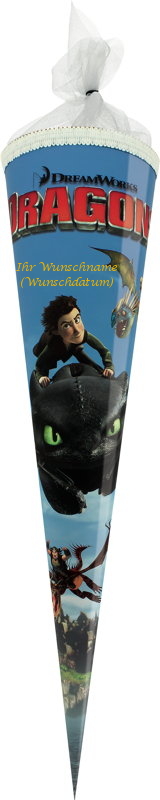 Dragons Schultüte mit gold gefärbter Gravur / Zuckertüte / Länge: 70cm / rund