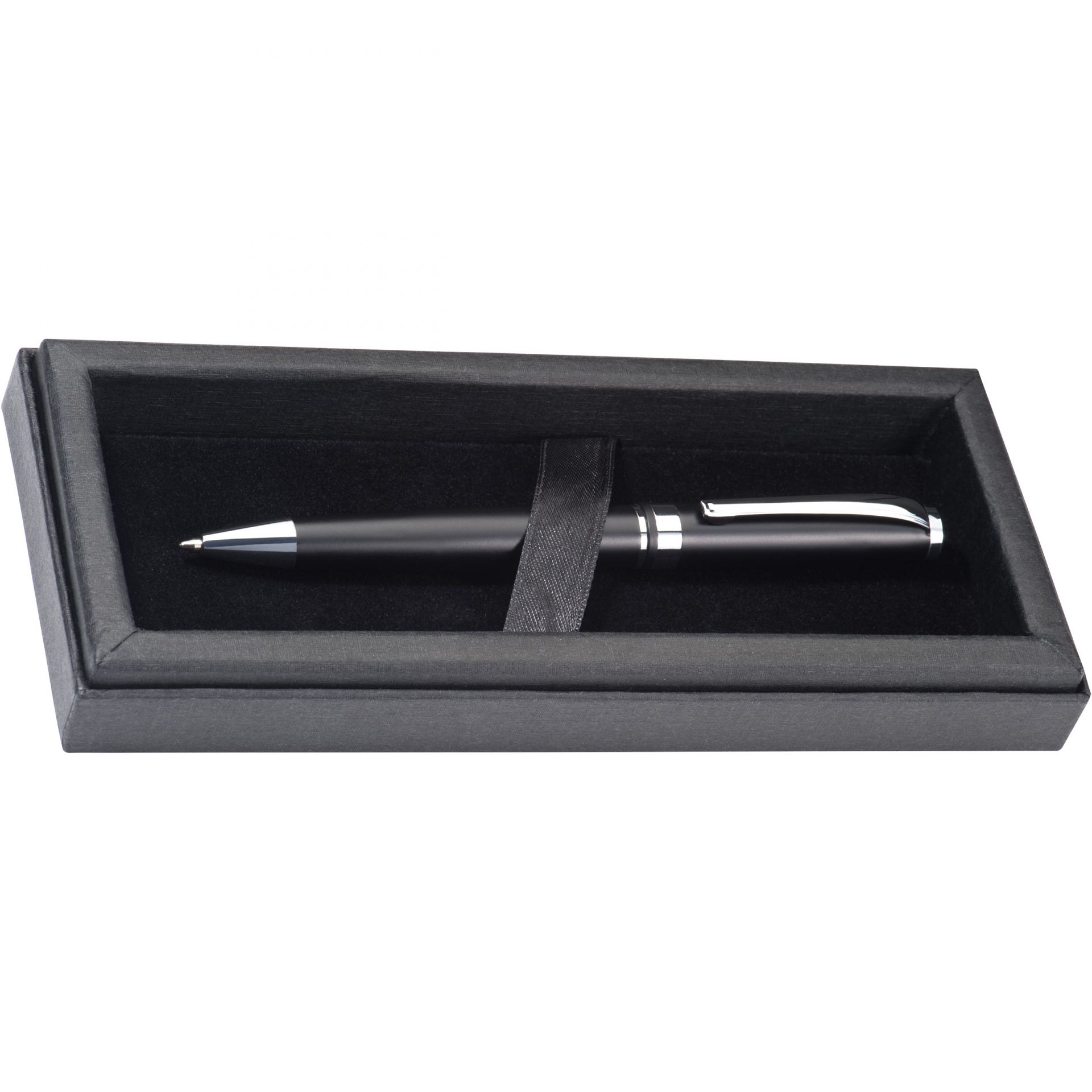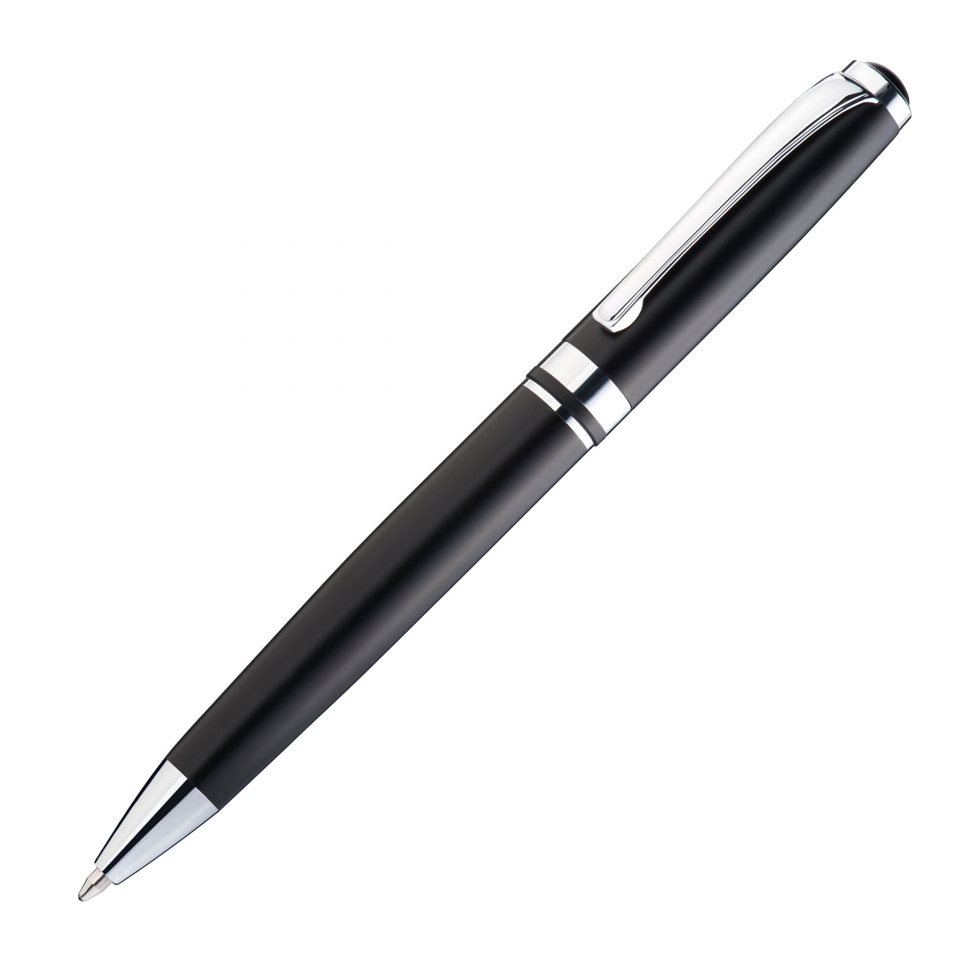 Drehkugelschreiber mit Gravur / mit verchromten Applikationen / Farbe: schwarz