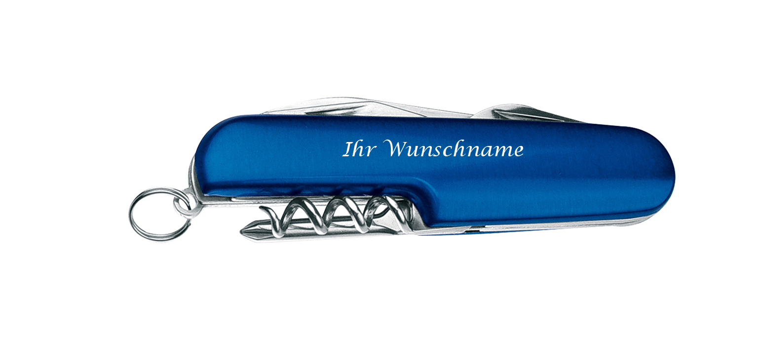 Edles 7-teiliges Aluminium Taschenmesser mit Gravur / Farbe: blau