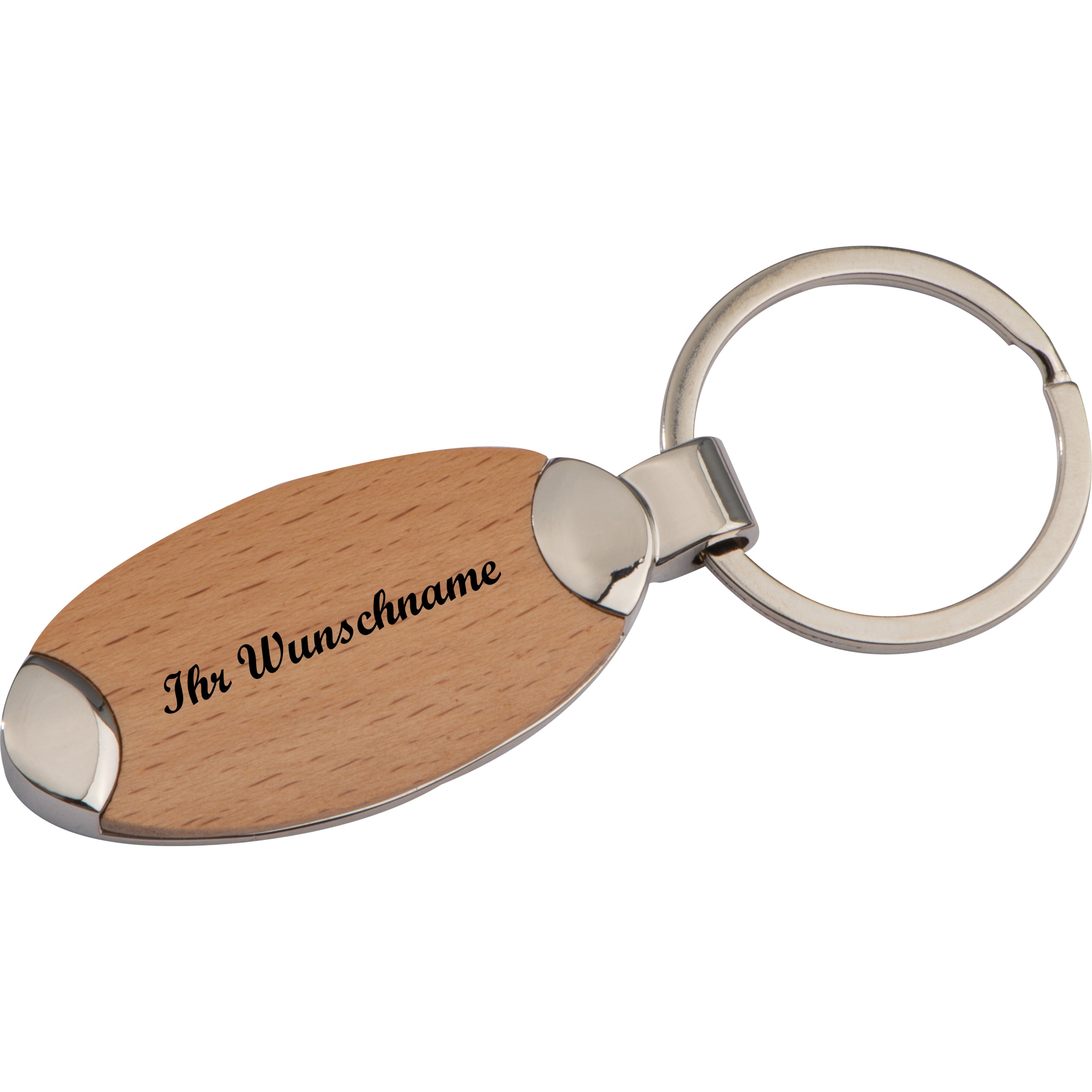 Produktinformationen "Eleganter Schlüsselanhänger mit Namensgravur - aus Metall mit einem Holzinlay"